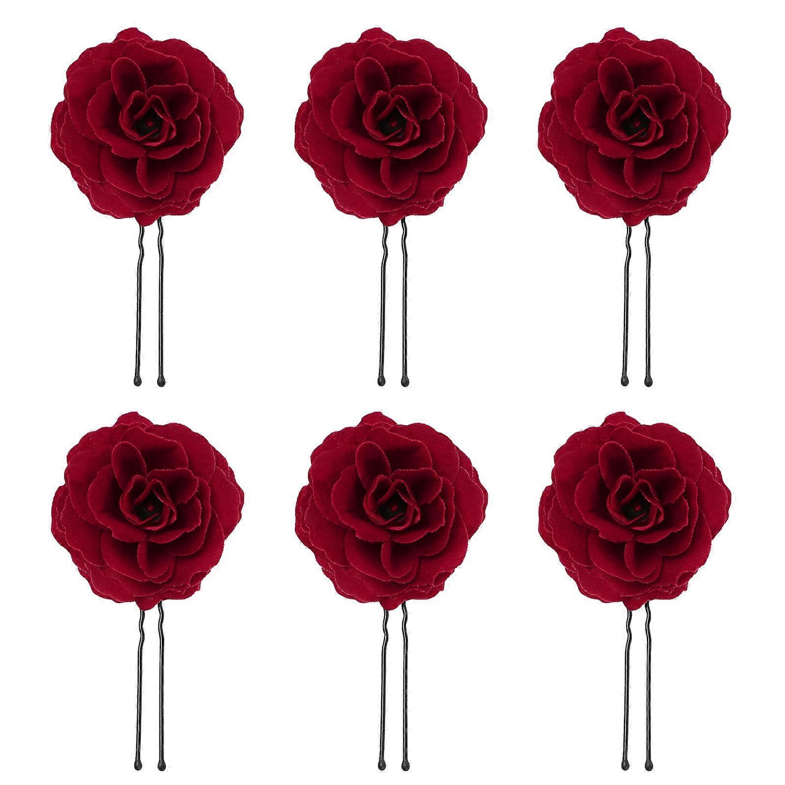 Floral Headwear Rose Hair Pin for Decoration 6Pcs Women Hair Accessories Red