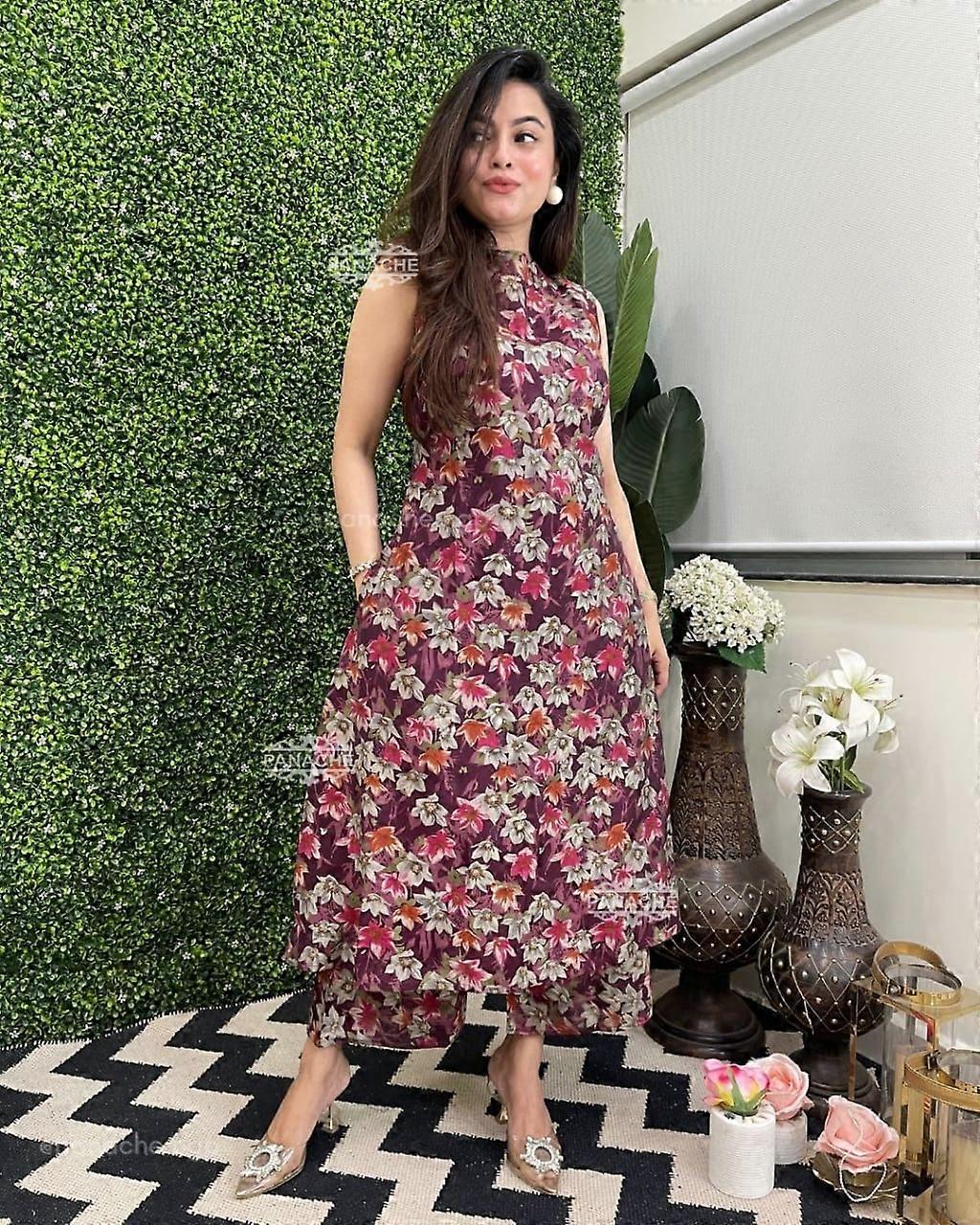 Women Designer Kurta Pant Set Indian Bollywood Top Tunic Muslin Digital Print Kurti Dress