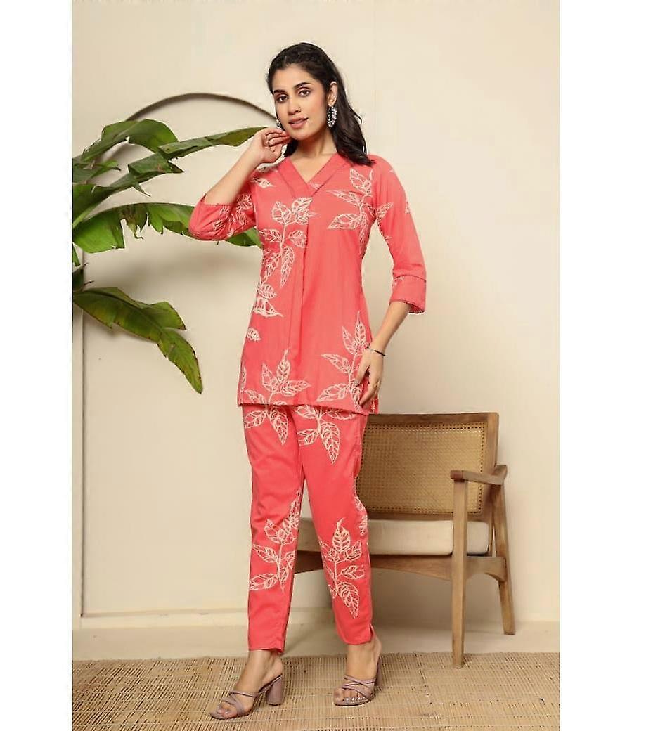 Women Designer Cotton Kurta Pant Cord Set Bollywood Top Tunic Kurti Party Wear Dress