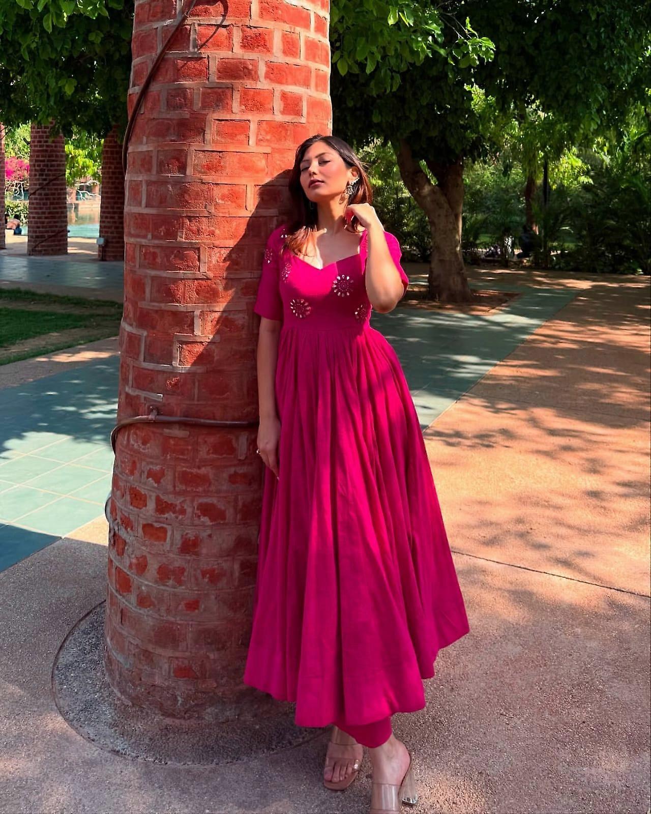 Indian Women Anarkali Party Wear Pure Cotton Gown Bollywood Top Tunic Ethnic Kurti Dress