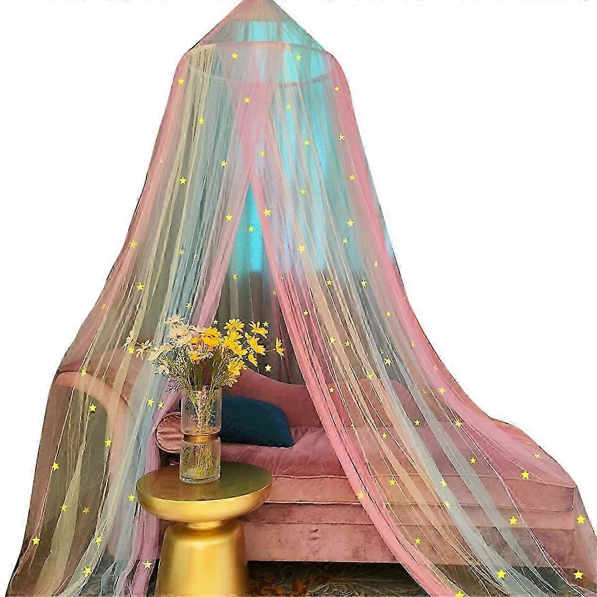 Princess Bed Canopy - Sparkle every night, enjoy a whimsical bedtime experience, your child will love going to bed , no longer afraid to turn off the lights at bedtime, these glowing stars sleep with your child, and then the lights fade away.Glow in the Night - These stars are made of environmentally friendly materials, and are glued to the mosquito net using advanced hot printing technology, and the stars will not fall off. The fabric feels very soft and can be safely used as a crib canopy, and the rope can be used to adjust the appropriate hanging height.Girls Bed Canopy - The best gift for girl's room decoration, and it is also a perfect decoration for more occasions, such as birthday parties, weddings, baby showers, game tents, Christmas, role-playing, afternoon tea, photography props...You can DIY it into various shapes, suitable for your exclusive .Convenient Canopy Installation - This bed canopy comes with all the mounting hardware materials to achieve maximum effect, allowing the top of the bed to be exposed to sufficient daylight or indoor light, ready for glowing stars on the bed at night.Please note:the physical slightly color difference or difference, does not affect the use, please do not mind, thank you!Colour:As ShownMaterial:PolyesterPackage Contents:1 * mosquito netOnly the above package content, other products are not included.Note: Light reflection and different displays may cause the color of the item in the picture a little different from the real thing. The measurement allowed error is +/- 1-3cm.