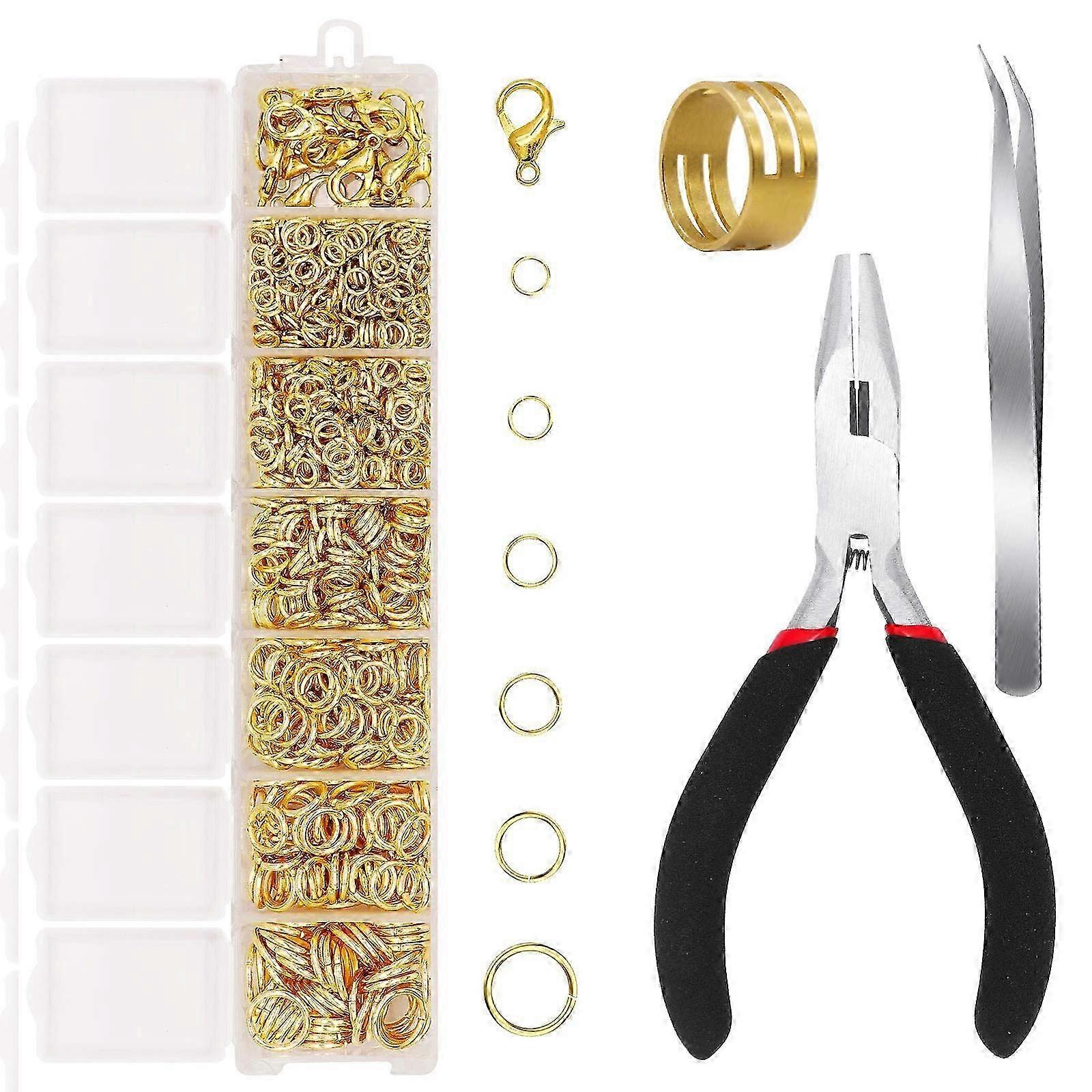 Open Jump Ring Kit - Includes 1500 pieces of gold open jump rings, 20 pieces of lobster clasps, 1x flat nose pliers, 1x tweezer and 1x jump ring opener. All the supplies and tools for jewelry making and repairing are neatly organized in a compact box. Note: The quantity is for reference only, manual packaging, a slight error is normal, and the actual situation shall prevail.Useful and Practical - Chainmail jump rings for making special & unique jewelries and chain maille. Multiple sizes for suspending small items from delicate earrings, necklaces, bracelets, anklets.Easy to Use - Use the tweezers to pick jump ring in proper size, and then use the copper opener to open the jump ring. Finally, use the flat nose pliers to fix the jump ring. A starter kit for adults, kids, girls who like jewelry making.No Harm to Skin - the brass core gives these jump rings a nice weight, strength and feel, they are plated after being formed and cut, and they do not contain nickel or lead.