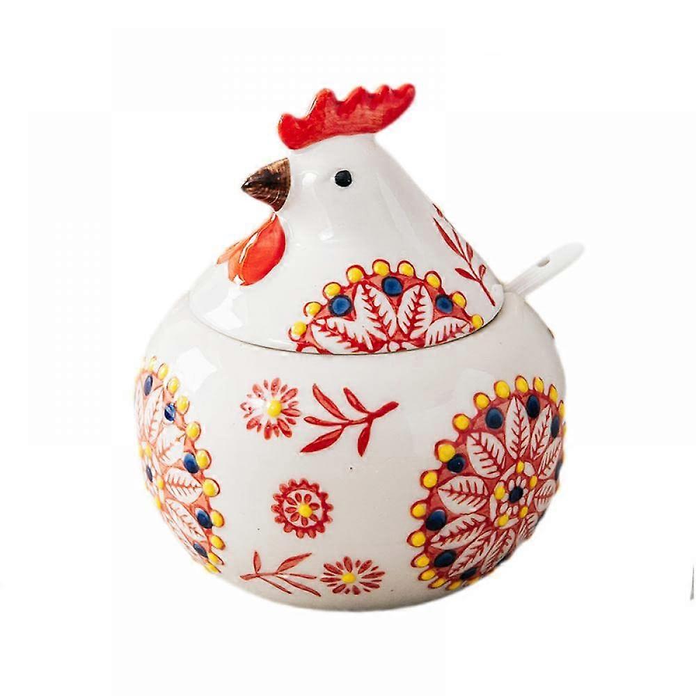 Porcelain Spice Pot With Lid And Spoon, 11oz Salt Bowl, Sugar Bowl, Chicken-Shaped Getaway Solids