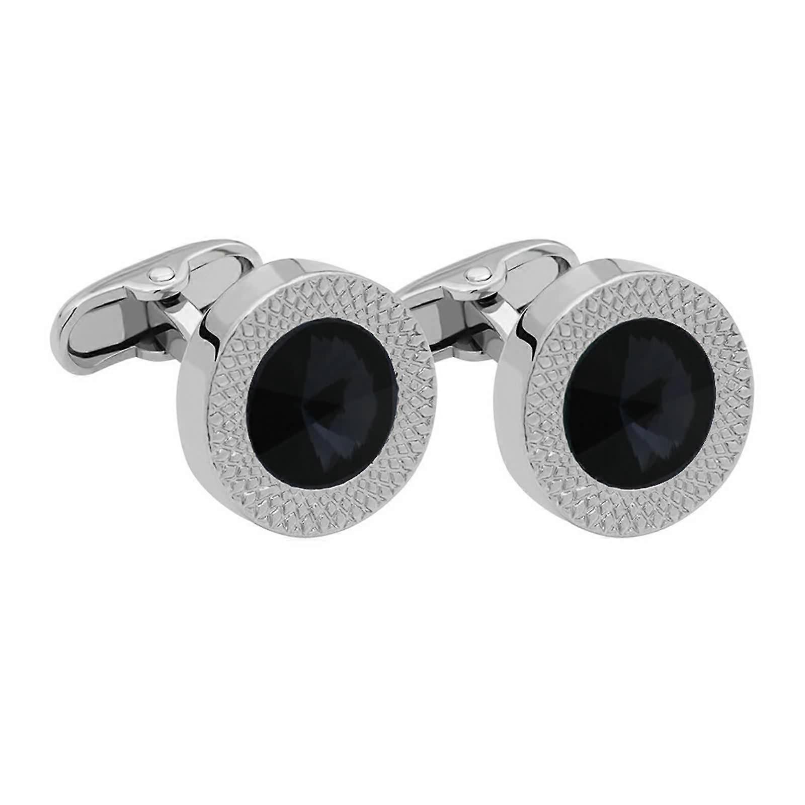 Men's Cufflinks Round Cubic Zirconia Gemstone Wedding Shirt Accessories with Gift Box Black