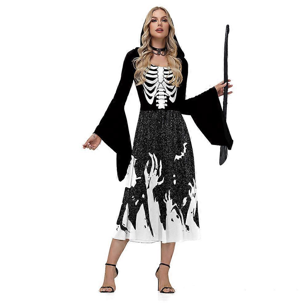 Halloween witch hooded skeleton spider funny pattern digital print skirt trumpet sleeve dress for women