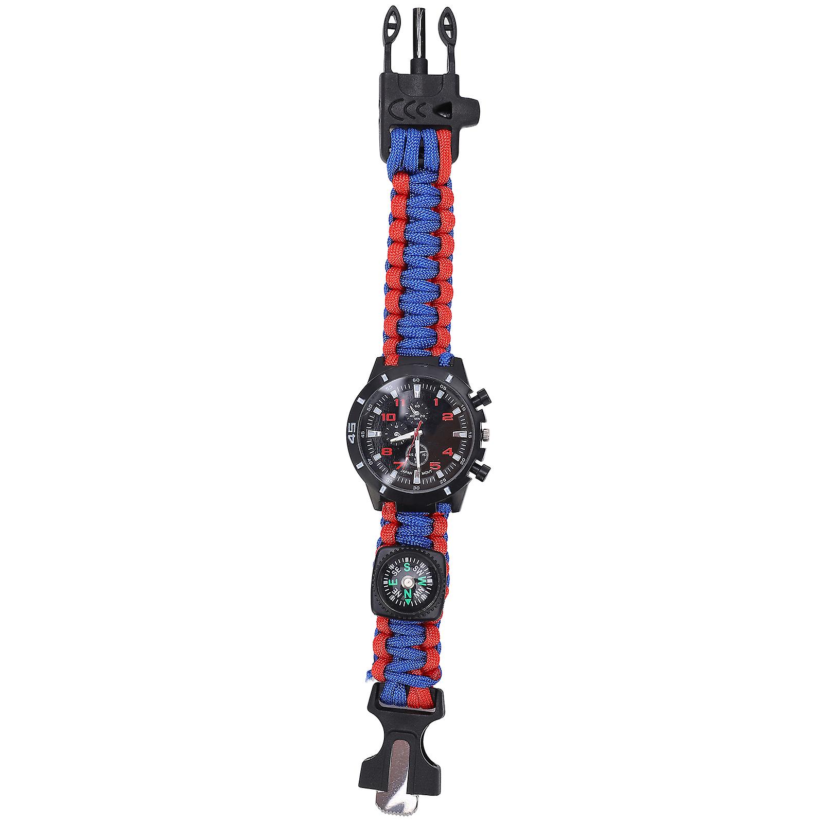 6 in 1 Survival Wrist Watch Multifunctional Outdoor Gear for Man and Women Emergency Survival(Red Blue )