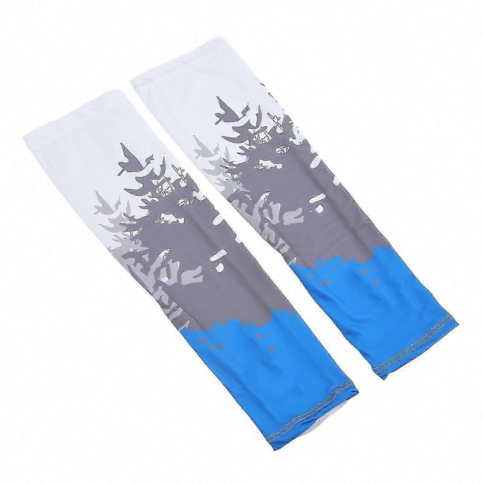 XL Blue Ice Silk Arm Sleeves - UV Sun Protection, Breathable & Cooling for Summer Sports & Driving