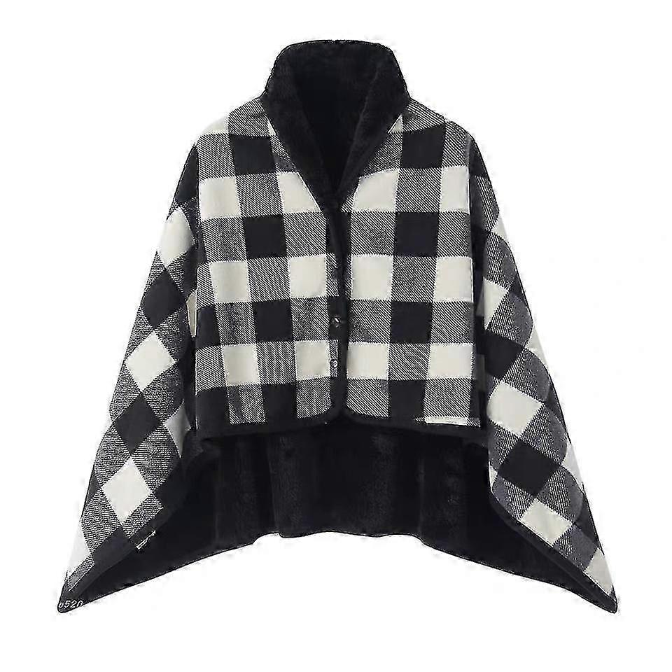 Women Multiway Plaid Poncho Shawl Wrap Fleeced Wearable Blanket Ultra Soft Sherpa Flannel Cape - Q37/yy