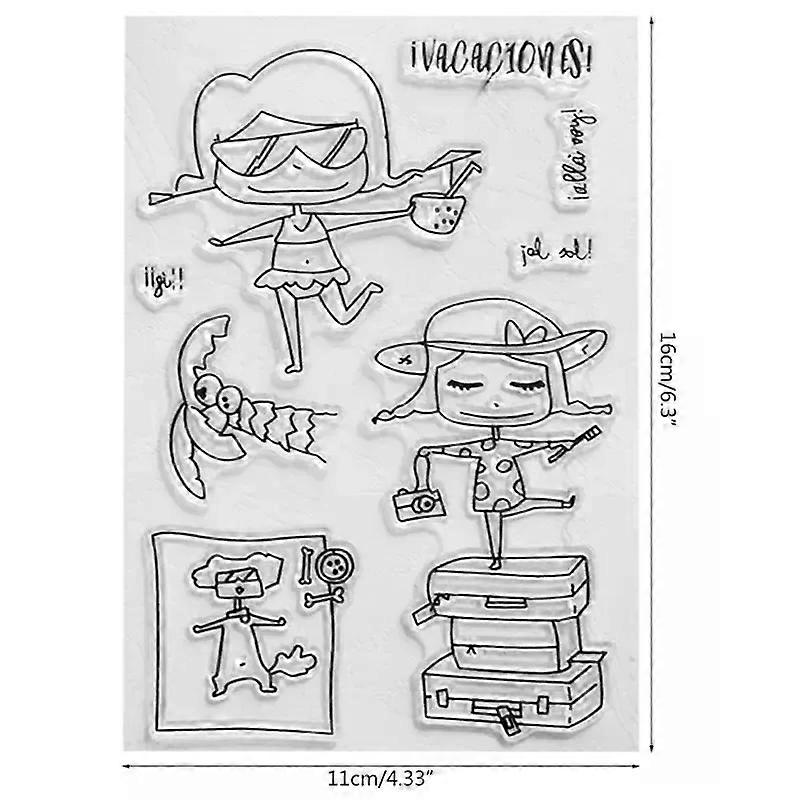 Travel Girl Silicone Transparent Stamp Stamp Scrapbooking for Hand Decorating Albums Embossing Decorative Photo Album Paper Card for Art Crafts Handma