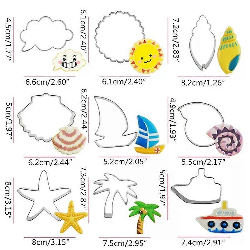 9Pcs/Set Beetle Car Bell Tower/Beach Ocean Shell/Owl Cookie Cutter Mold/Dress Series Cookie Cutter Cutter Fonda Stainless Steel Cookie Cutter