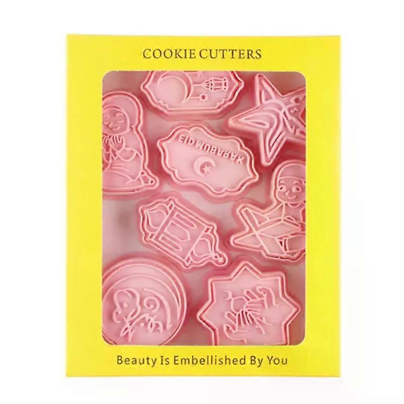 8Pcs Cookie DIY Stamp Cookie Cutter Mold Mold Set Plastic Sweet Cookie DIY Mold Cutting Eid Ramadan Series Shapes