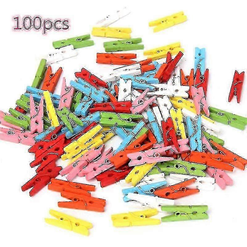 Description The item is a pack of 100pcs mini wooden clothespin made of wood. Pegs are 2.5cm tall, for hanging photos, clothes, arts and crafts. It can help you to capture all the joy and memories of your love and adventures through the years in using the exclusive mini photo clips. Practical for craft projects, gifts, home decorations, holiday items, outdoor activities, etc.Features - Color: Random Color.- Material: natural wood and metal spring.- Dimension: 25mm.- Portable, multi-usage, lovely, mini wooden clips.- You can use them hanging pictures and cards to decorate your home and party.- It can help you to capture all the joy and memories of your love and adventures through the years in using the exclusive mini photo clips.- Exquisite appearance, colorful pattern makes photo clip looks sweet.- Lightweight photo clip can be carried in your bag.- Fits for party, lovely photo peg, gift or crafts for birthday or other memorial days.- Practical for craft projects, gifts, home decorations, holiday items, outdoor activities, etc.