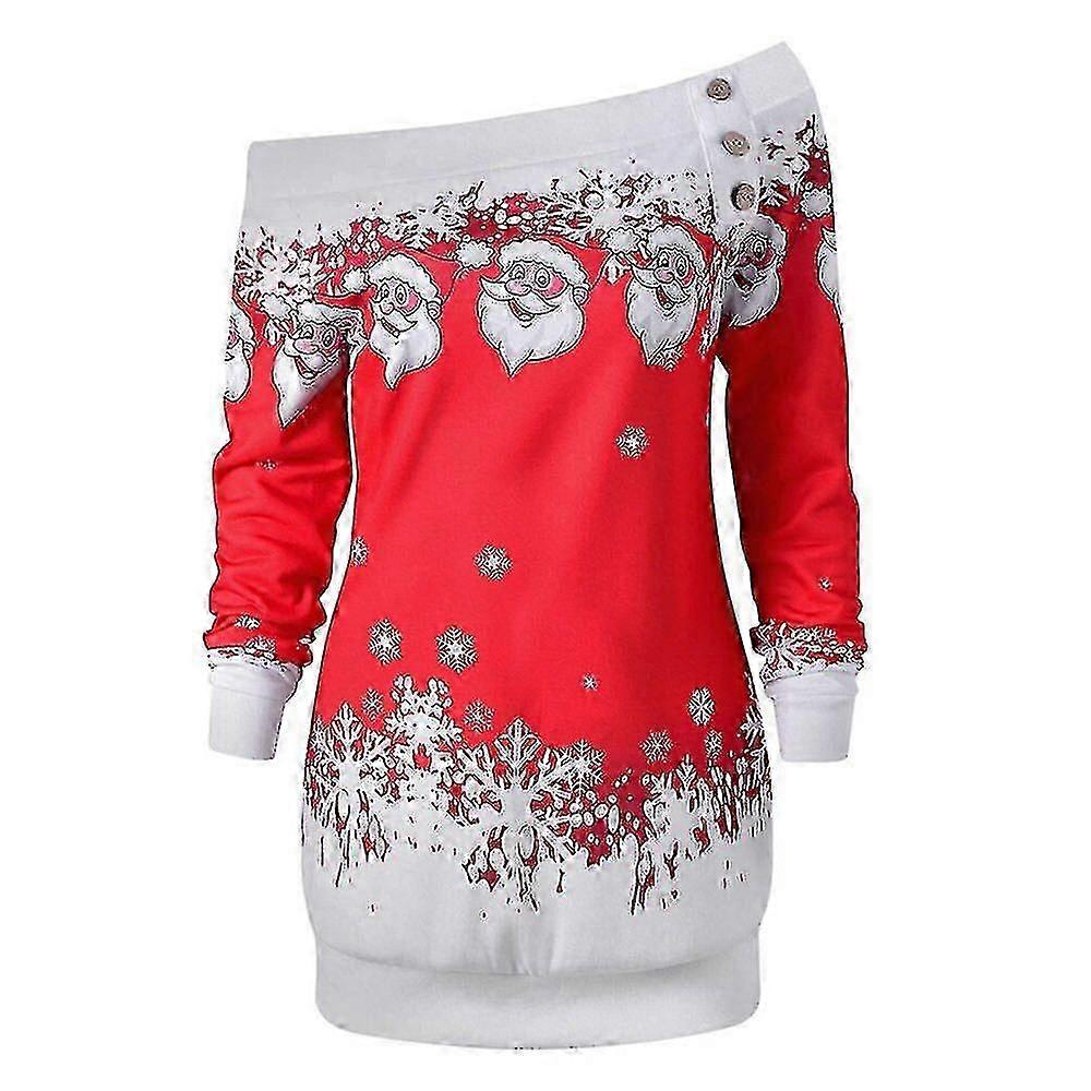 Santa Claus Print Mini Dress - Festive One-Shoulder Christmas Party Outfit