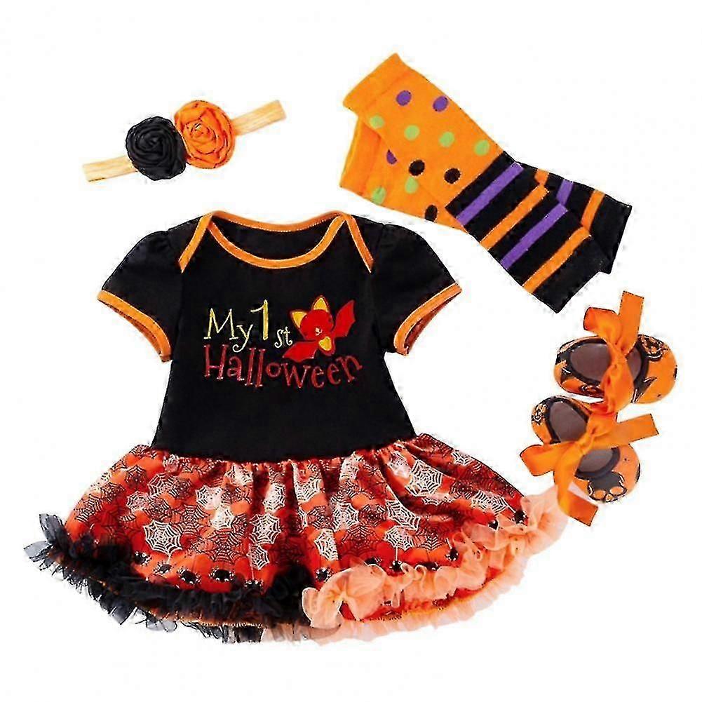 Description:Unlike other similar products on the market, the Halloween dress is designed with flowy hem and pumpkin patterns, which allows your children to enjoy the Halloween activities while also being able to attract other people's attention.Our Halloween suit includes a dress, a headband, a pair of shoes and a pair of socks. Use it as a nice photography prop is an ideal choice. Your lovely children will catch other's attention and become the focus center.It is constructed of cotton material.Our product is available in multiple sizes, they are 0-3M,3-6M,6-12M,1-2 Years.This product is perfectly suitable for baby, student, toddler, children, etc.Item Name: Halloween DressMaterial: CottonStyle: FashionGender: WomenSize Type: RegularSeason: SummerSleeve Type: Short SleeveNeck Type: RoundDress Length: Above Knee, MiniFeatures: Elastic Waist, Attractive, WashableSize Details:Size: 0-3M, Bust: 47cm/18.5", Sleeve: 8cm/3.15", Length: 36cm/14.17", Recommended Age: 0-3 Months (Approx.)Size: 3-6M, Bust: 49cm/19.29", Sleeve: 9cm/3.54", Length: 38cm/14.96", Recommended Age: 3-6 Months (Approx.)Size: 6-12M, Bust: 53cm/20.87", Sleeve: 19cm/7.48", Length: 42cm/16.54", Recommended Age: 6-12 Months (Approx.)Size: 1-2 Years, Bust: 57cm/22.44", Sleeve: 11cm/4.33", Length: 45cm/17.72", Recommended Age: 12-24 Months (Approx.)Package Includes:1 x Halloween Dress1 x Headband1 Pair of Socks1 Pair of Shoes