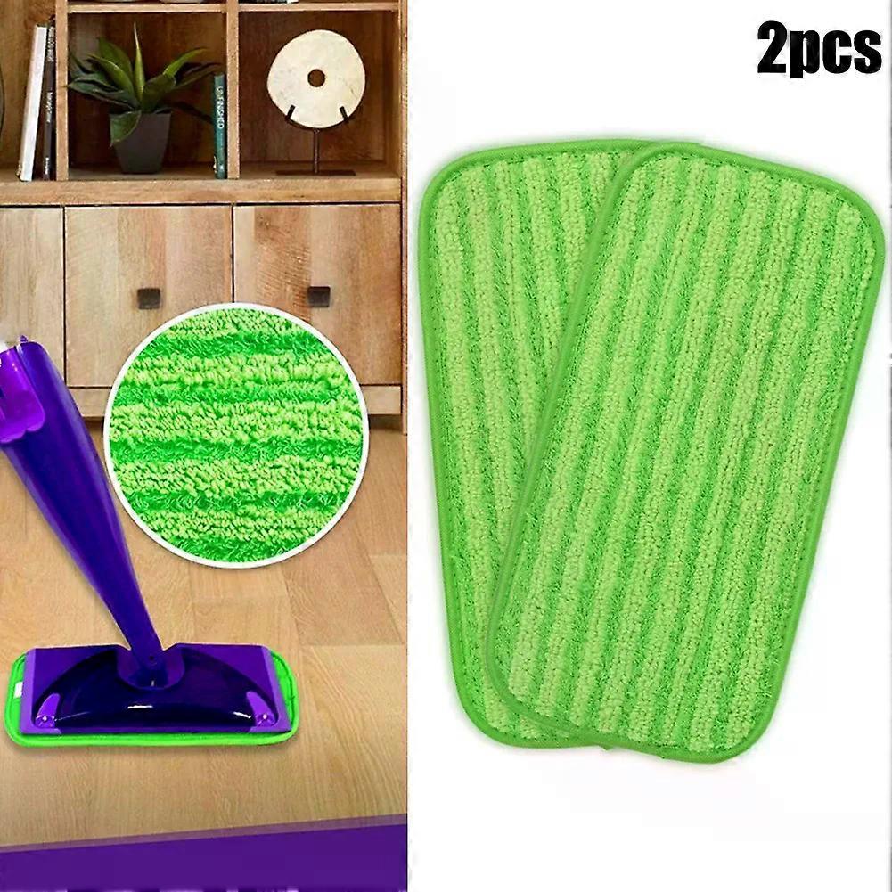 2 Pack Microfiber Reusable Mop Pads For Swiffer Wet Jet 12 Inch Green Flat Adhesive Mop Cover Soft Fine Fiber Practical Cleaning