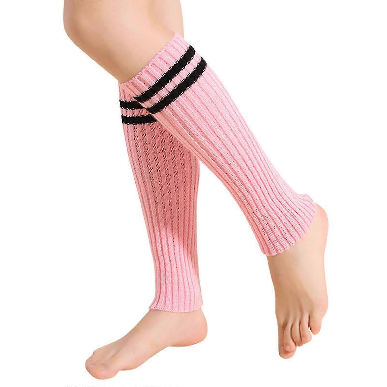 Women Ribbed Knit Leg Warmers Preppy Style Double Striped Boot Cover Calf Socks