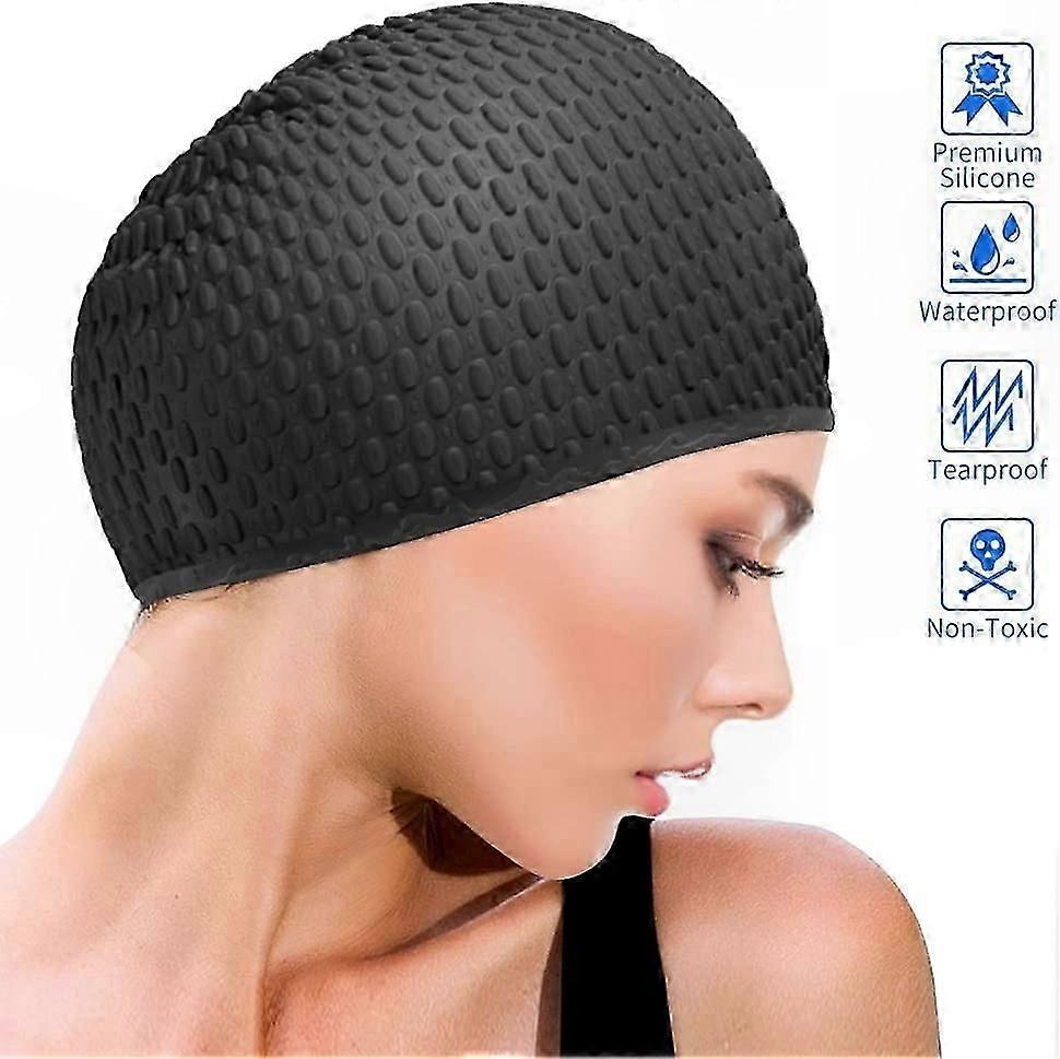 Unisex Adult Silicone Swim Cap, Anti-Slip Design, Black