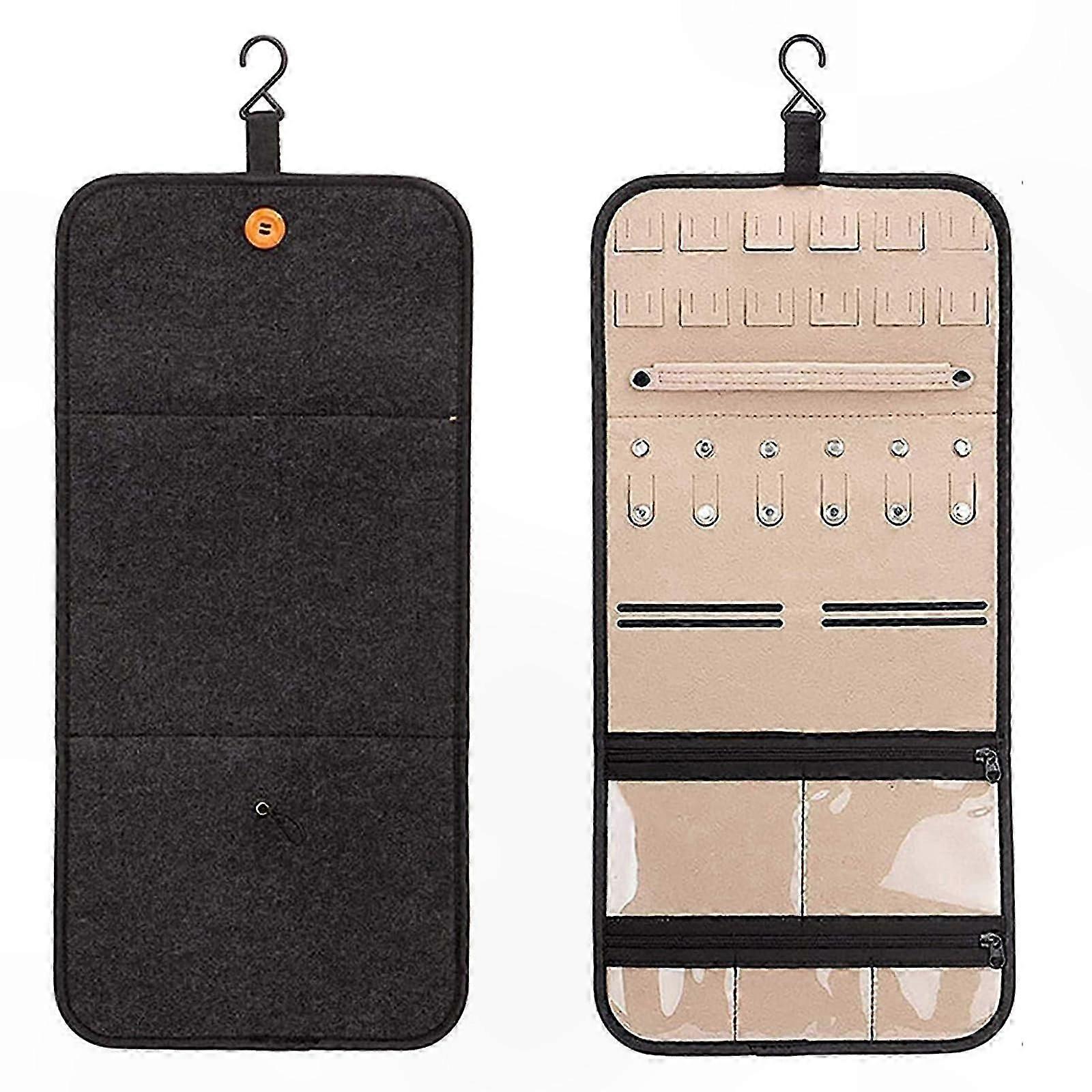 Gray Travel Jewelry Organizer Roll for Storage and Transport, 2 Pack Hanging Rolls