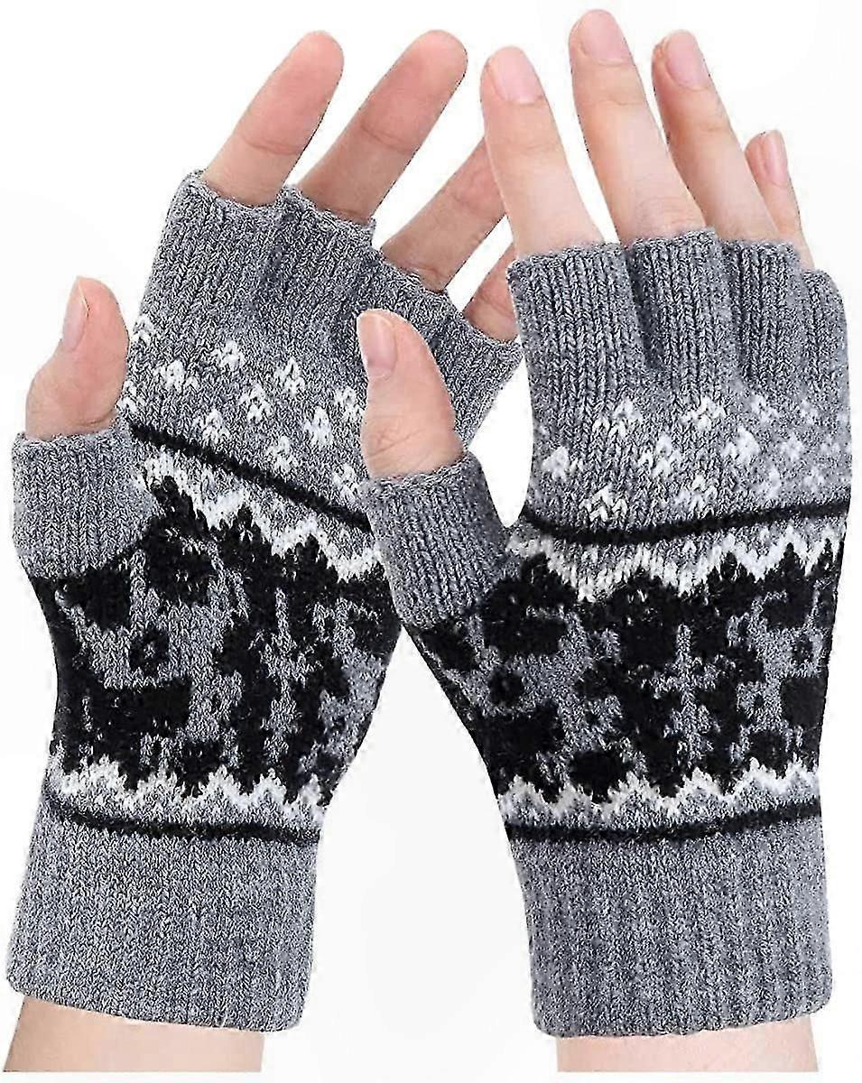 Winter Warm Half Finger Mittens for Women - Knitted Wool Gloves for Cold Weather Protection Against Wind