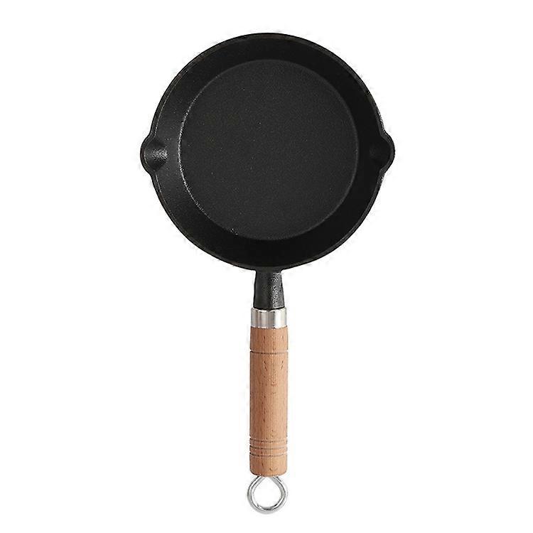 Household Hot Oil Frying Pan Cast Iron Skillet, Specification: Small 1. Material: iron 2. Can be used as a dinner plate and can be placed in the oven 3. Beech wood anti-scalding handle, comfortable to hold and can be hung 4. Suitable for induction cookergas cookerinfrared cookerelectric cookerceramic cooker 5. The bottom of the non-stick pan is easy to clean and does not leave oil stains 6. Double-sided backflow port, easy to pour, not easy to spill 7. Size: Small size is 24 cm in total length, 11 cm in diameter, 2.5 cm in height; large size is 27 cm in total length, 16 cm in diameter and 3 cm in height 8. Weight: about 500 grams for small, about 700 grams for large