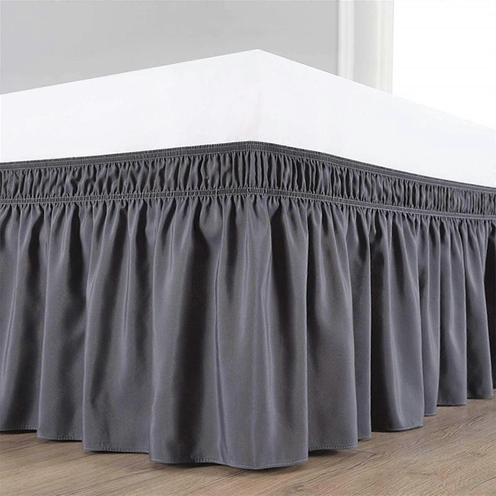 Bed Cover Ruffle Bed Skirt Wrap Around, Elastic Dark Grey Bed Skirt 200x220x45 cm for Easy Bed Surface Concealment