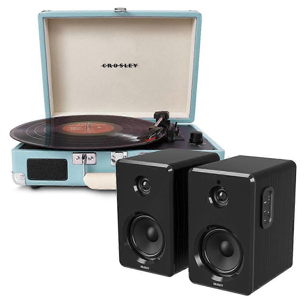 Crosley Cruiser Bluetooth Portable Turntable Turquoise + Bundled Majority D40 Speakers Black Turntables