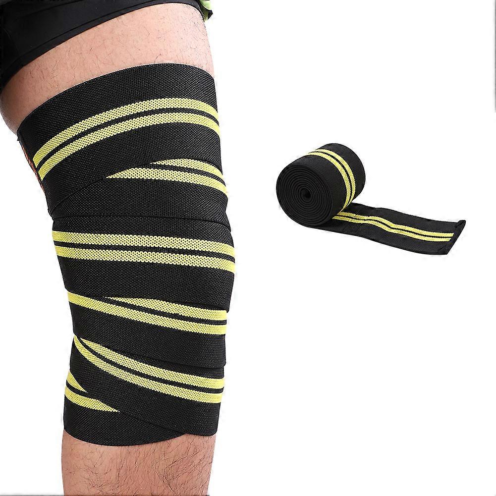 Fitness Knee Bandage Elastic Kneepad Straps for Gym Weightlifting Outdoor Sports (Black&Yellow)