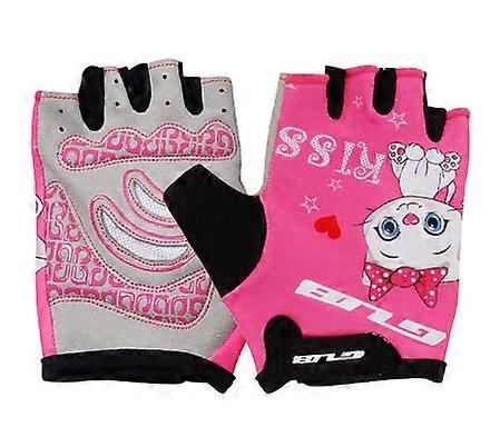 Children Breathable Bicycle Gloves Outdoor Sports Half Finger Gloves Red (Pink Cat L/XL)