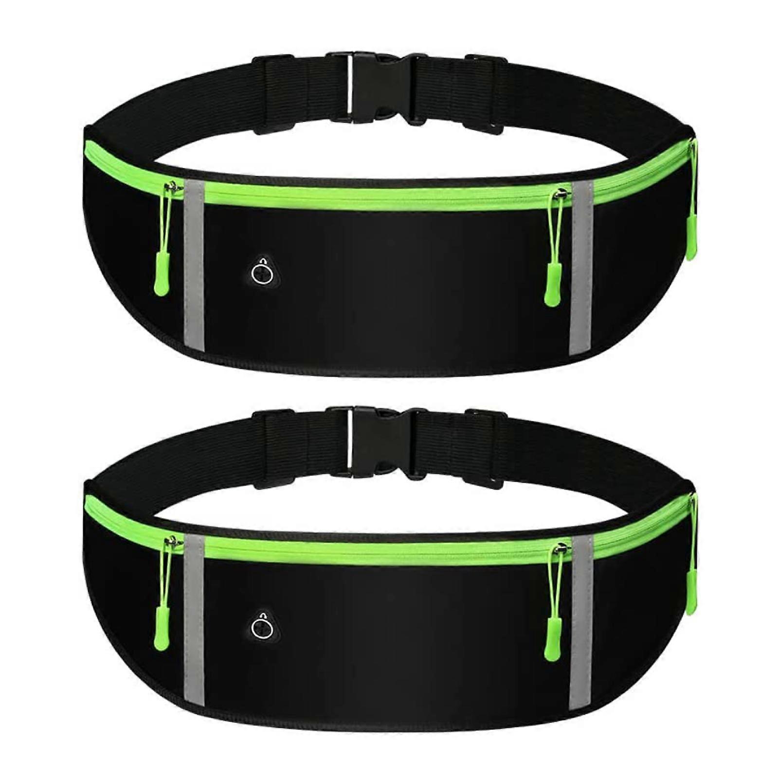 2 Pack Waist Pack Bag Runners Belt Reflective Runners Belt for Hiking Fitness Cycling Workout Gym Travel Jogging Pocket Belt Black