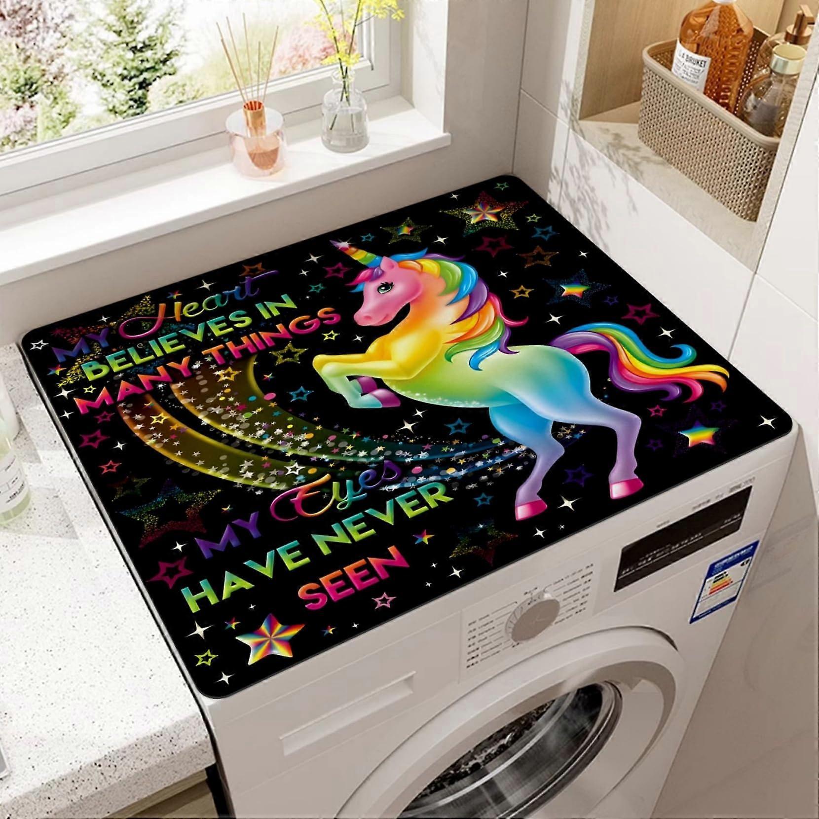 Universal Washing Machine N Cover 3D Flowers Unicorn Pattern Washable Dust Cover 60 x 60 cm Black Non-Slip Mat