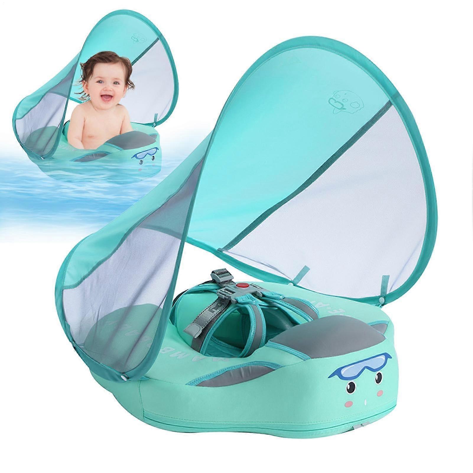 Baby Swimming Ring with Sun Canopy for Toddlers, UPF 50+ Sun Protection for Ages 3-24 Months, Green for Lake and Bath Use