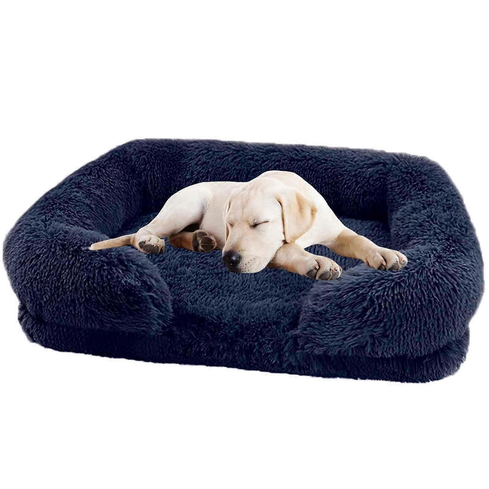 Orthopedic Dog Bed with Bolster Sides, Non‑Slip Washable Plush Sofa for Dogs, Royal Blue