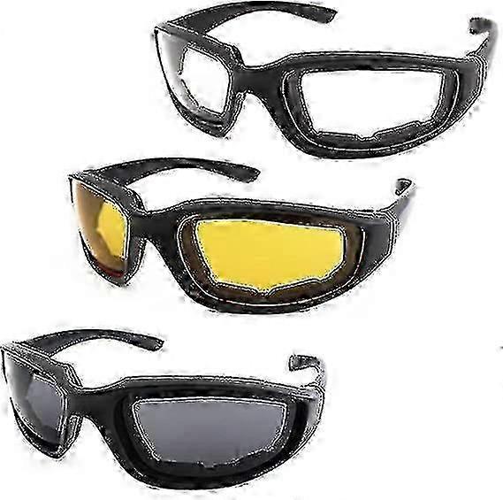 3 Pairs Motorcycle Riding Glasses UV Protection Dustproof Windproof Padded Goggles for Outdoor Cycling Sports