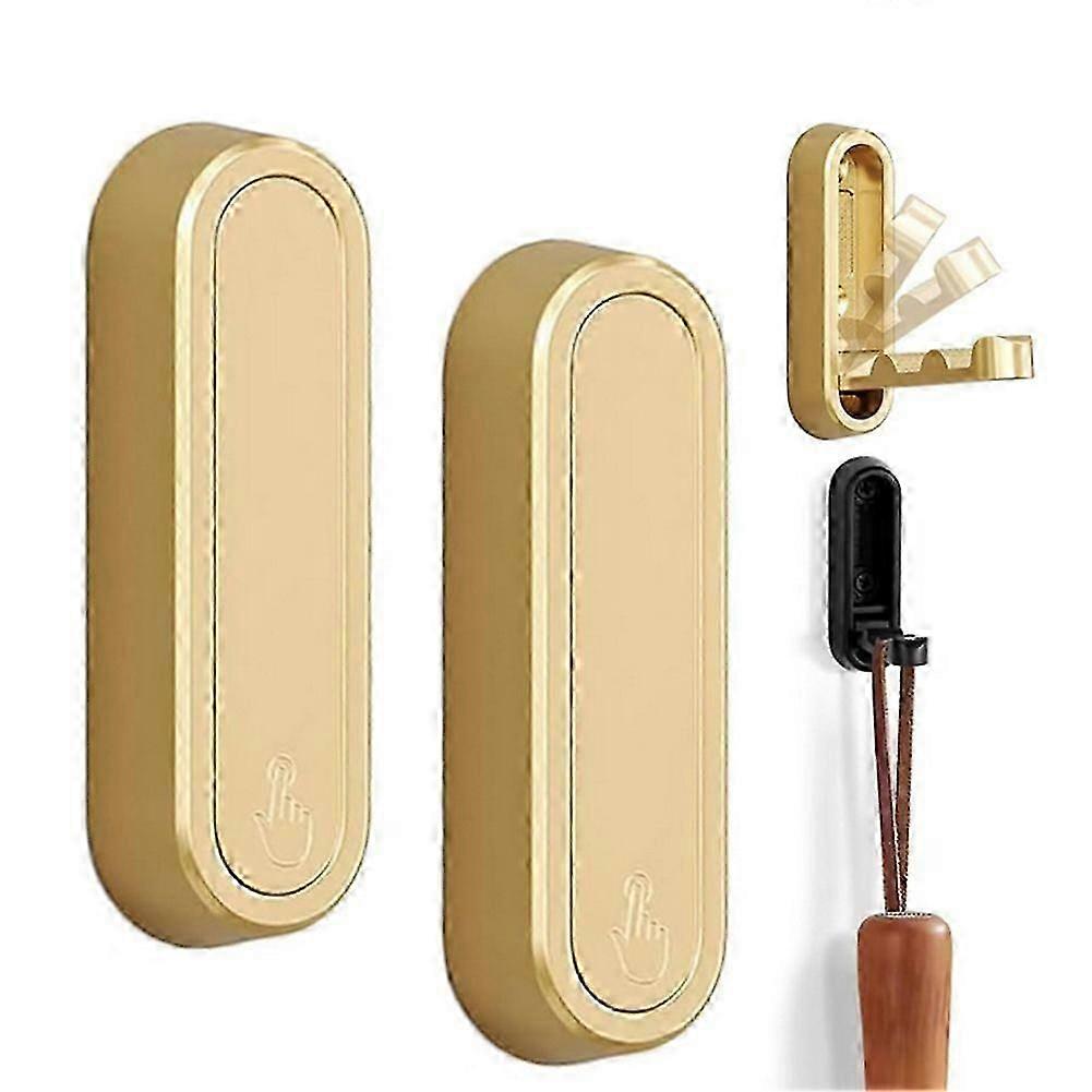 2Pcs Gold Folding Wall Mount Hooks,Bathroom Wall Hook Retractable,for Hanging Coats, Towels, Backpacks-Good