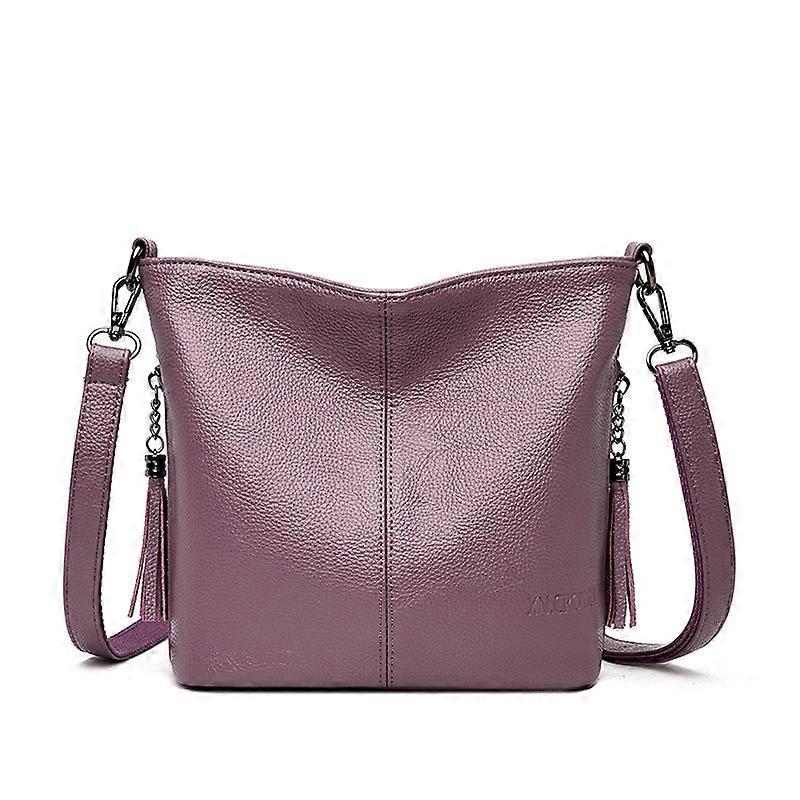 New Women's Genuine Leather Tassel Shoulder Bag European and American Fashion Casual Messenger Bag - Purple