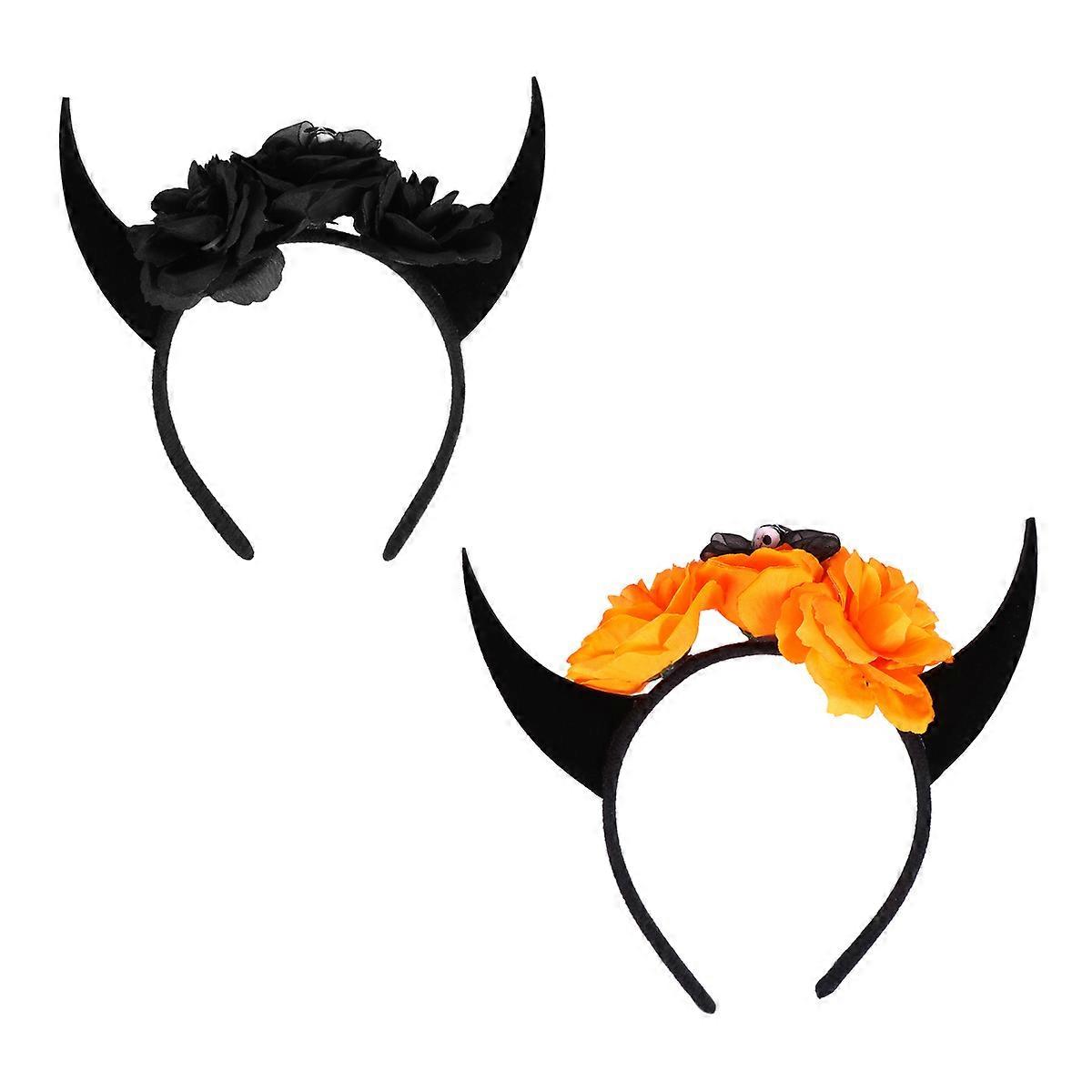 Black Skull Horn Headwear Fabric Halloween Horn Hair for 2Pcs Accessory