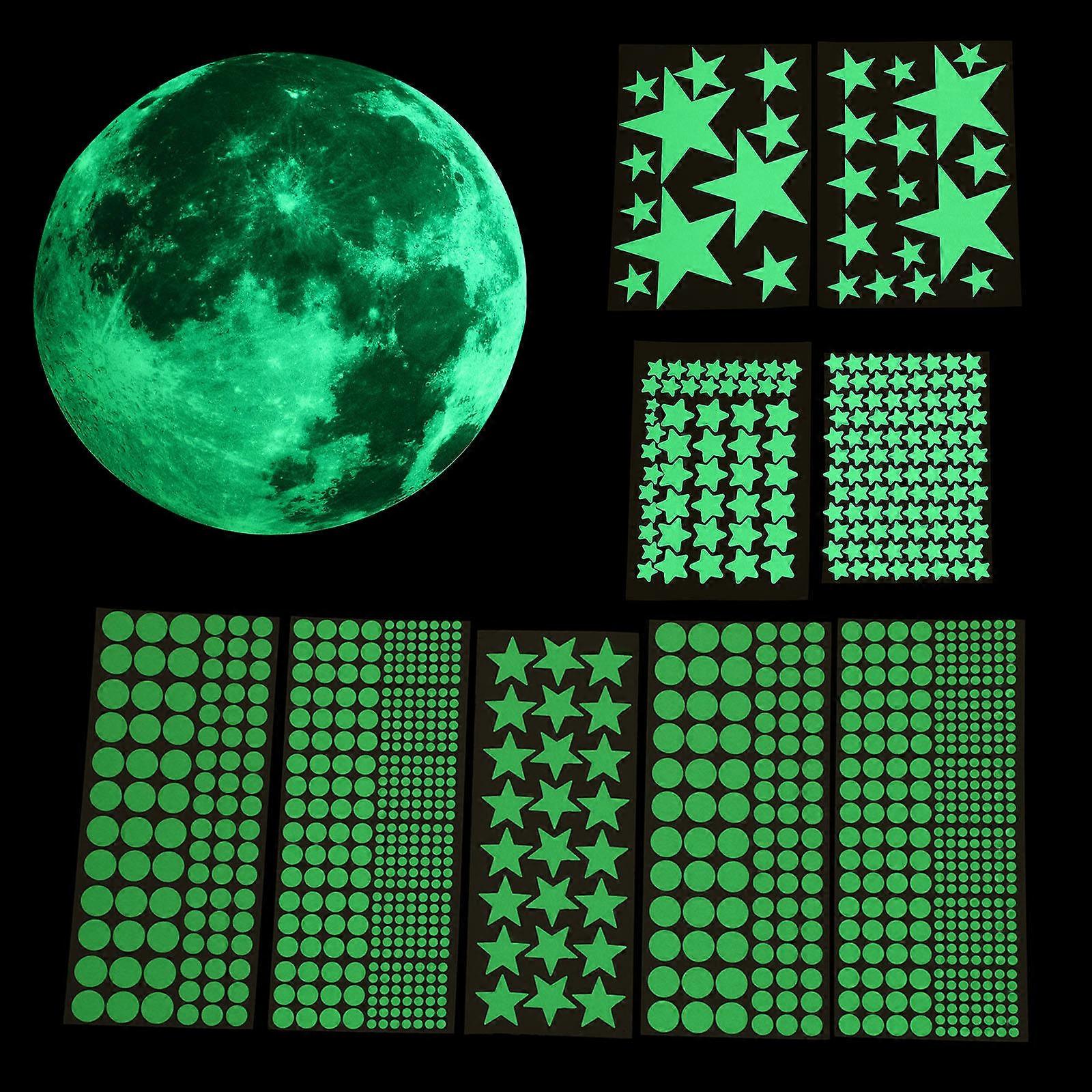 Luminous Moon Stars Dots Decals 1Set Green PVC Ceiling Decorations Universe Feel for Decor