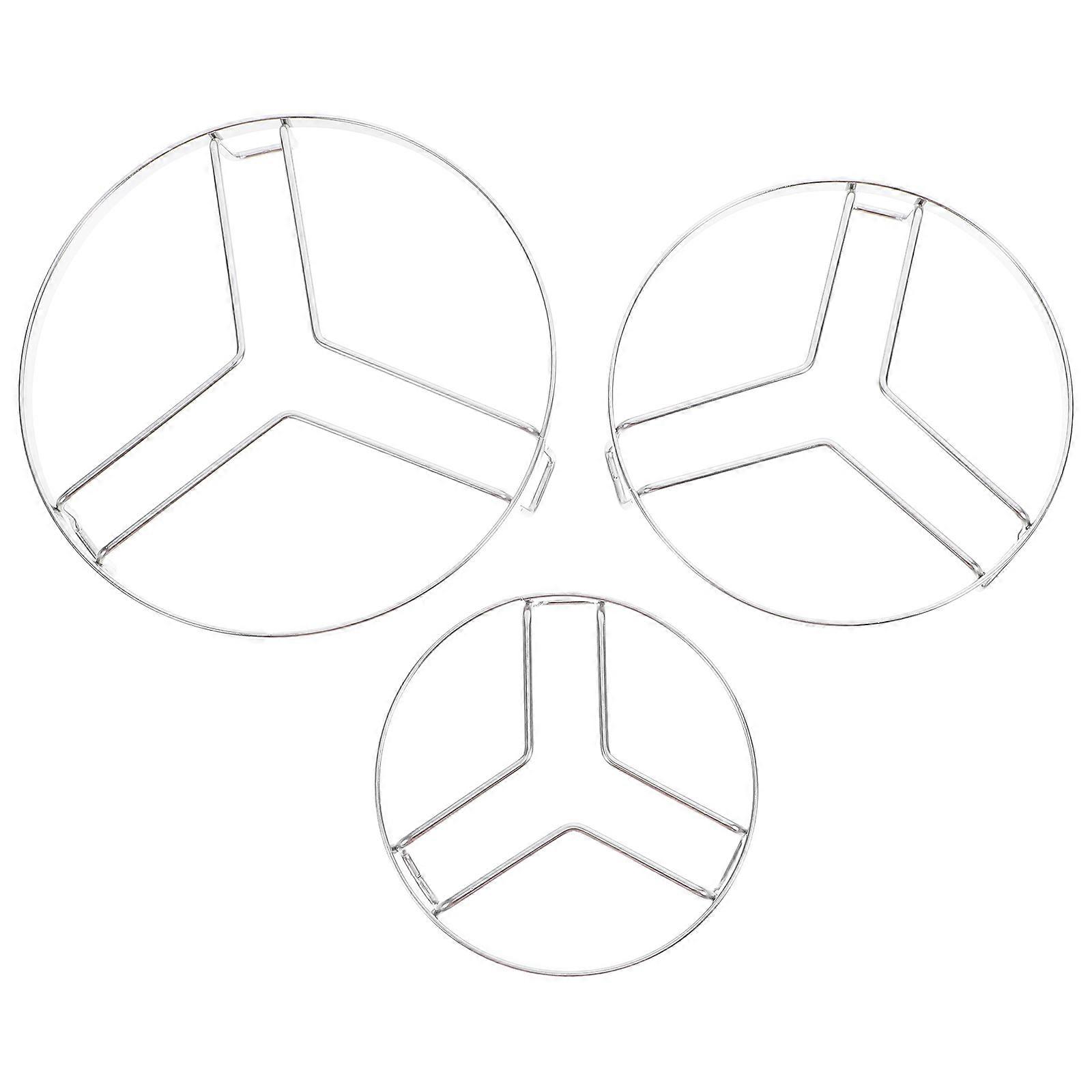 You can put steamed fish or other food in plate and put it on this steam rack. This steaming rack is an essential storage container at home. It has good high-temperature resistance, and you can use it to make delicious dumplings. Features -Color:Silver -Material:Stainless steel -Size:18.30X18.30X3.30cm/7.19X7.19X1.30in(L) -Size:15.40X15.40X3.30cm/6.05X6.05X1.30in( ) -Size:12.50X12.50X3.30cm/4.91X4.91X1.30in(S) - Steaming rack is strong enough, not easily deformed or broken, and can serve you for a longtime. - The three-legs structure design makes the steaming rack very stable, and different sized racks are suitable for different pots or plates. - Even heat dissipation and heat conduction, save much of your efforts time and time. - Pot steam food rack can be used not only as a steam rack, but also as a cooling rack, and so on. - The stainless steel steam rack adopts smooth surface to make it very convenient and easy to wash. Package list: 1 x Cooling Rack (L) 1 x Cooling Rack ( ) 1 x Cooling Rack (S)