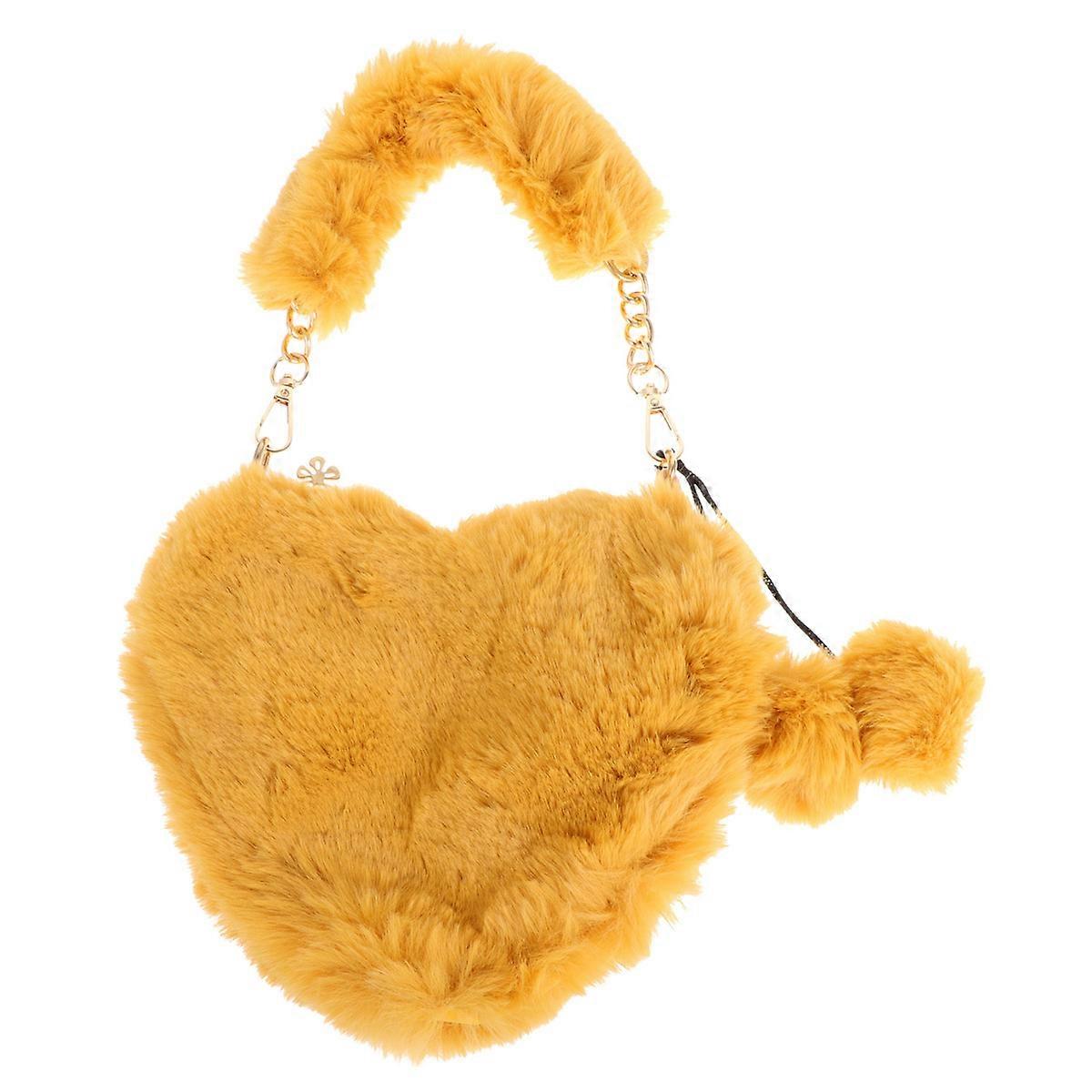Heart Shaped Handbag For Women Suitable For Beach Party Shopping Dating Made Of Yellow Furry Material With 1Pcs Function