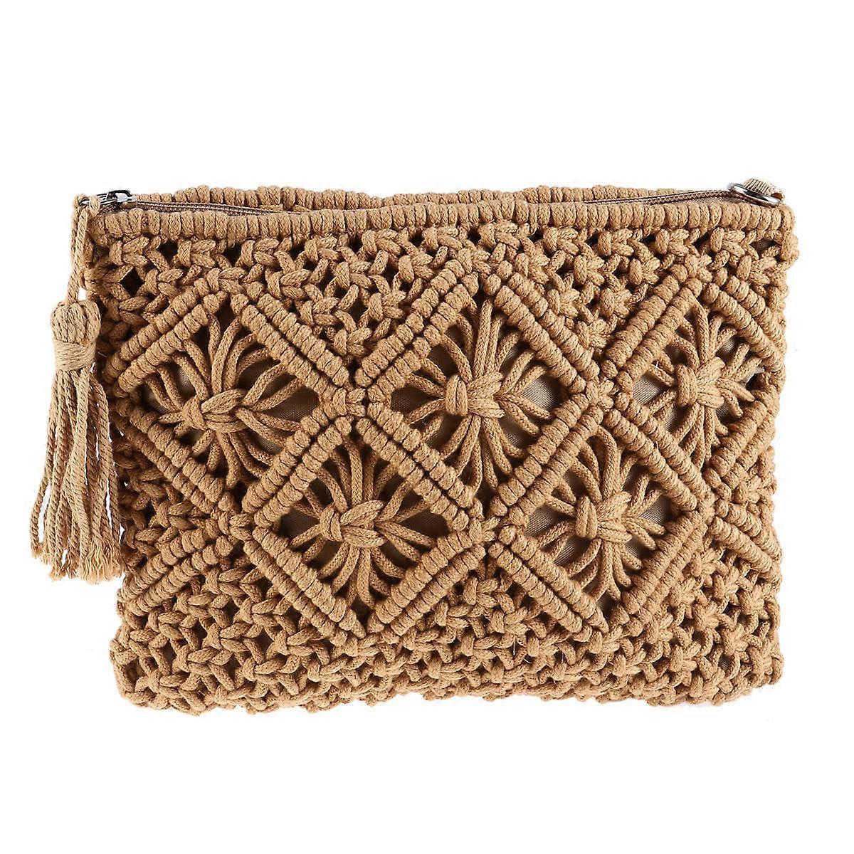 String Handbag Hollow Clutch Bag for Women Use 1Pcs Cotton Woven Khaki