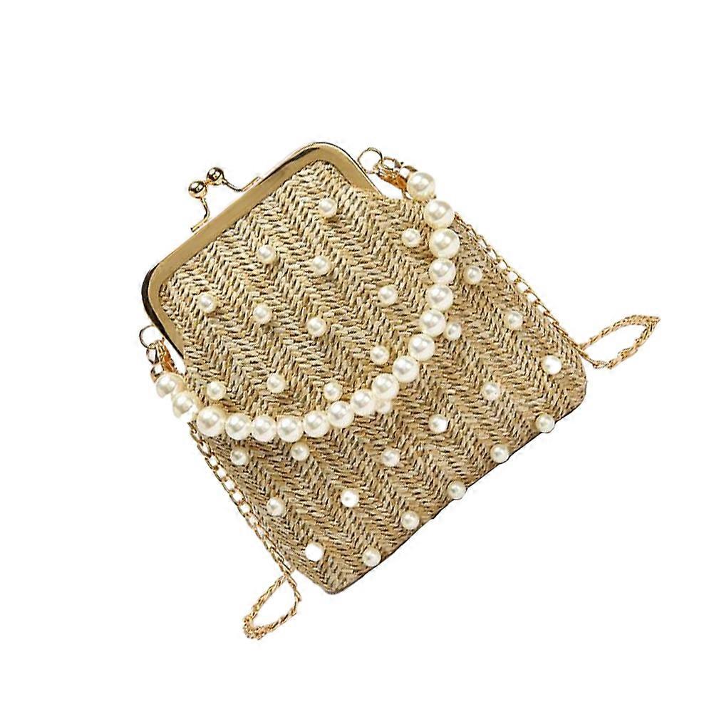 Khaki Grass Woven Mini Crossbody Bag for Girl Storage Use
