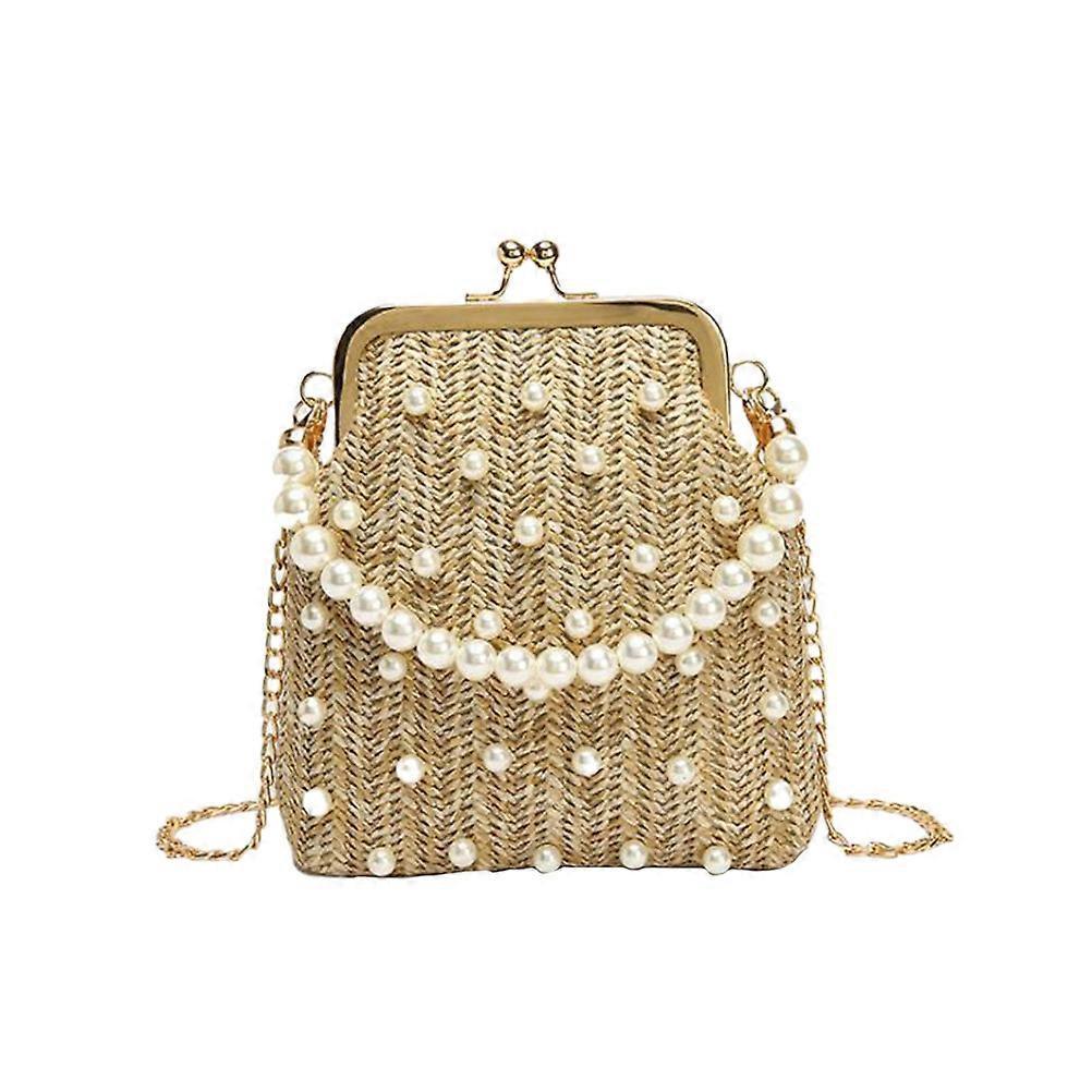 Women Crossbody Bag Khaki Durable PU Simple Bag for Girl with Pearl Decor for Storage Use