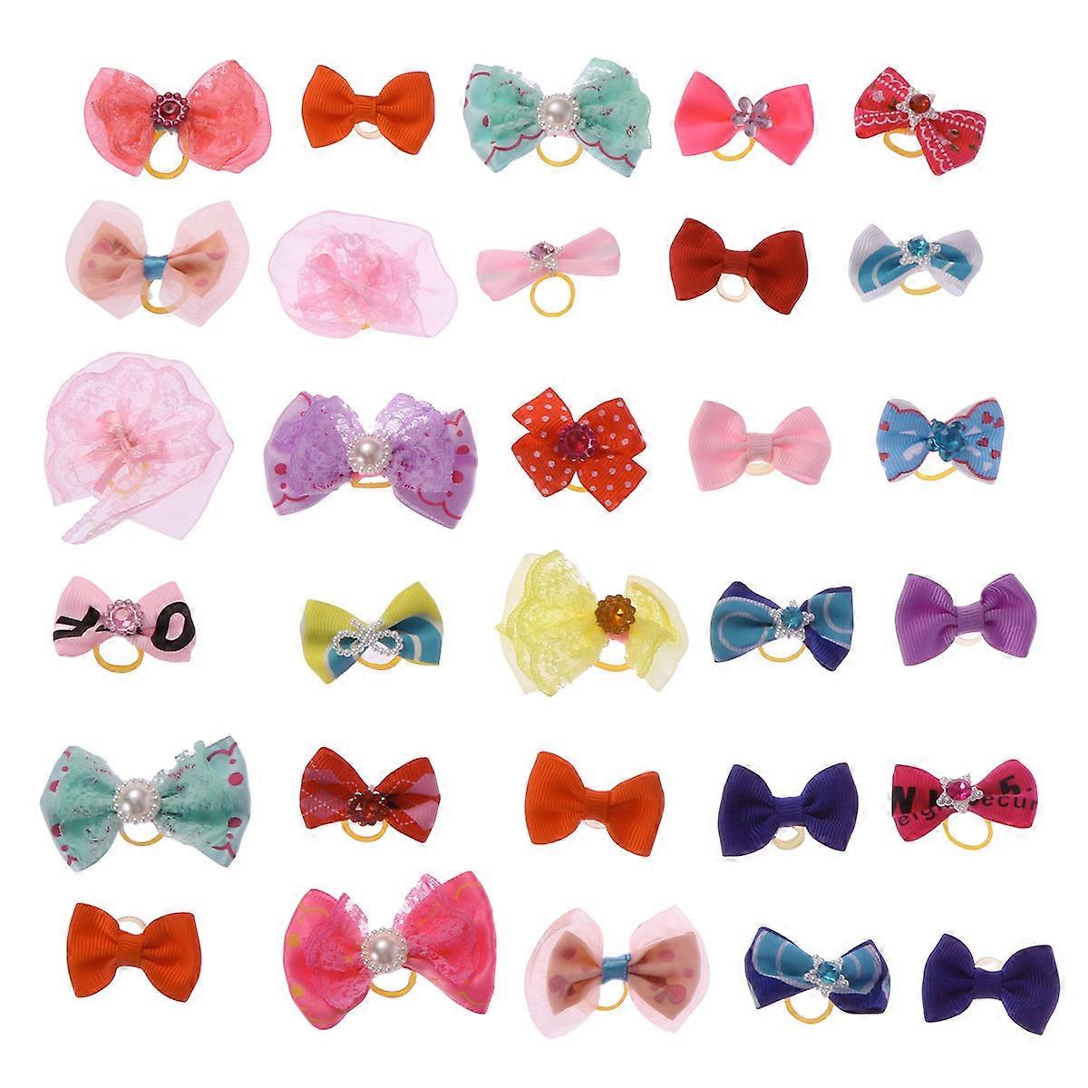 Pet Hair Ties Bowknot Rubber Bands for Styling 60Pcs Multicolor Set