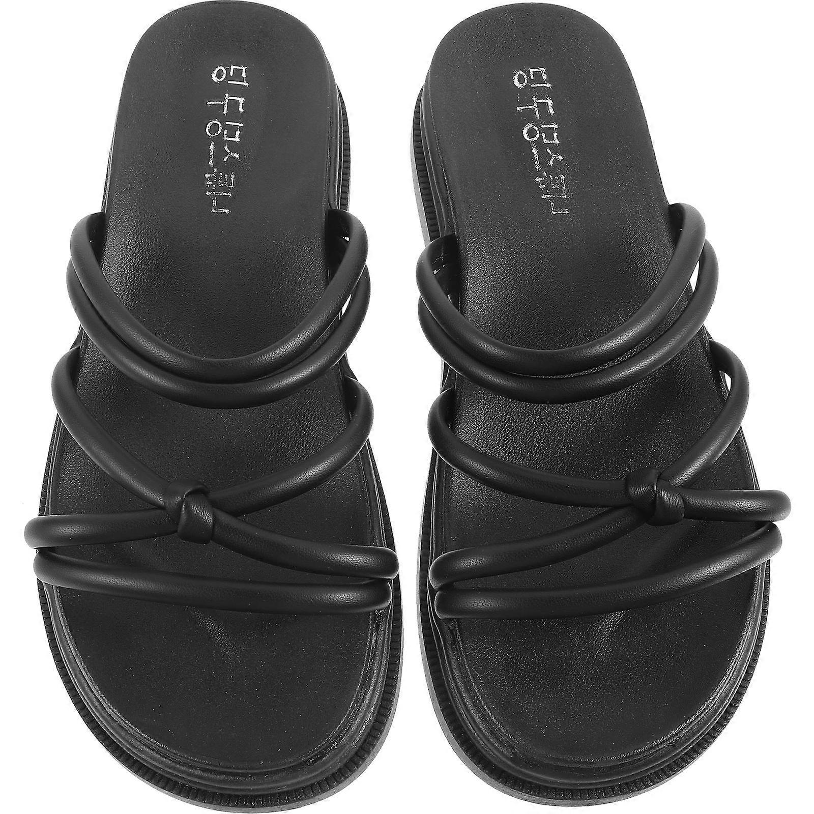 Fashion Sandals Flat Sole Simple Slippers for Women 1Pair Black