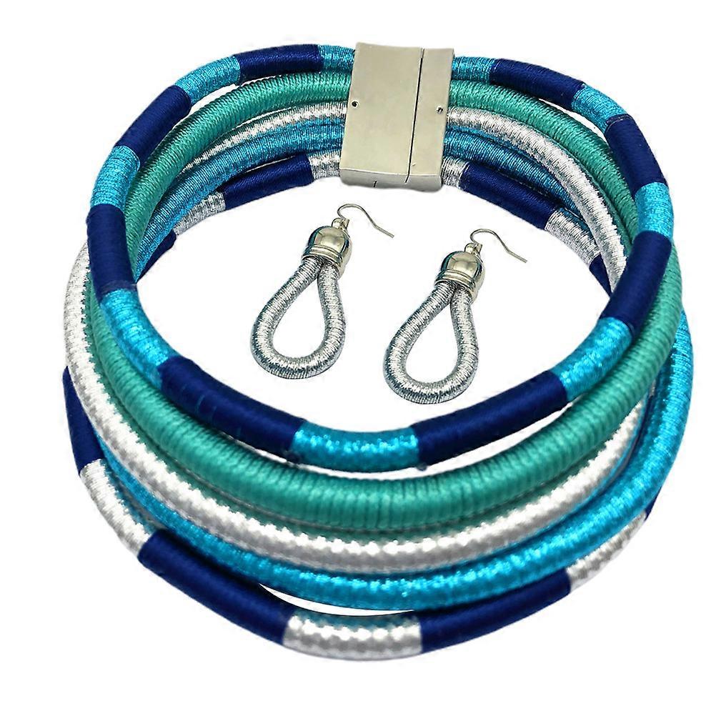 Unique African Style Necklace Earrings Set with Multilayer Weaving for Women 1Set