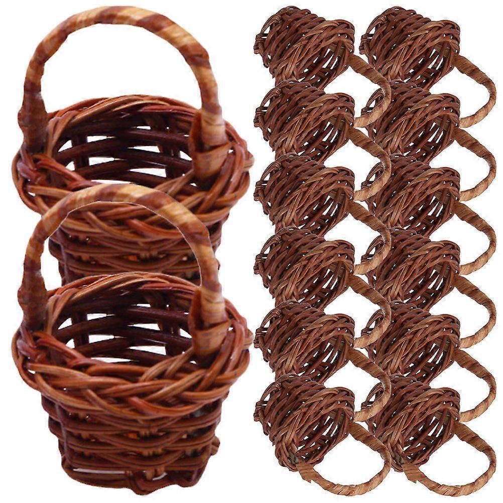 Dark Brown Miniature Woven Flower Basket for Storage Rustic Decorative Toy House 20pcs Set