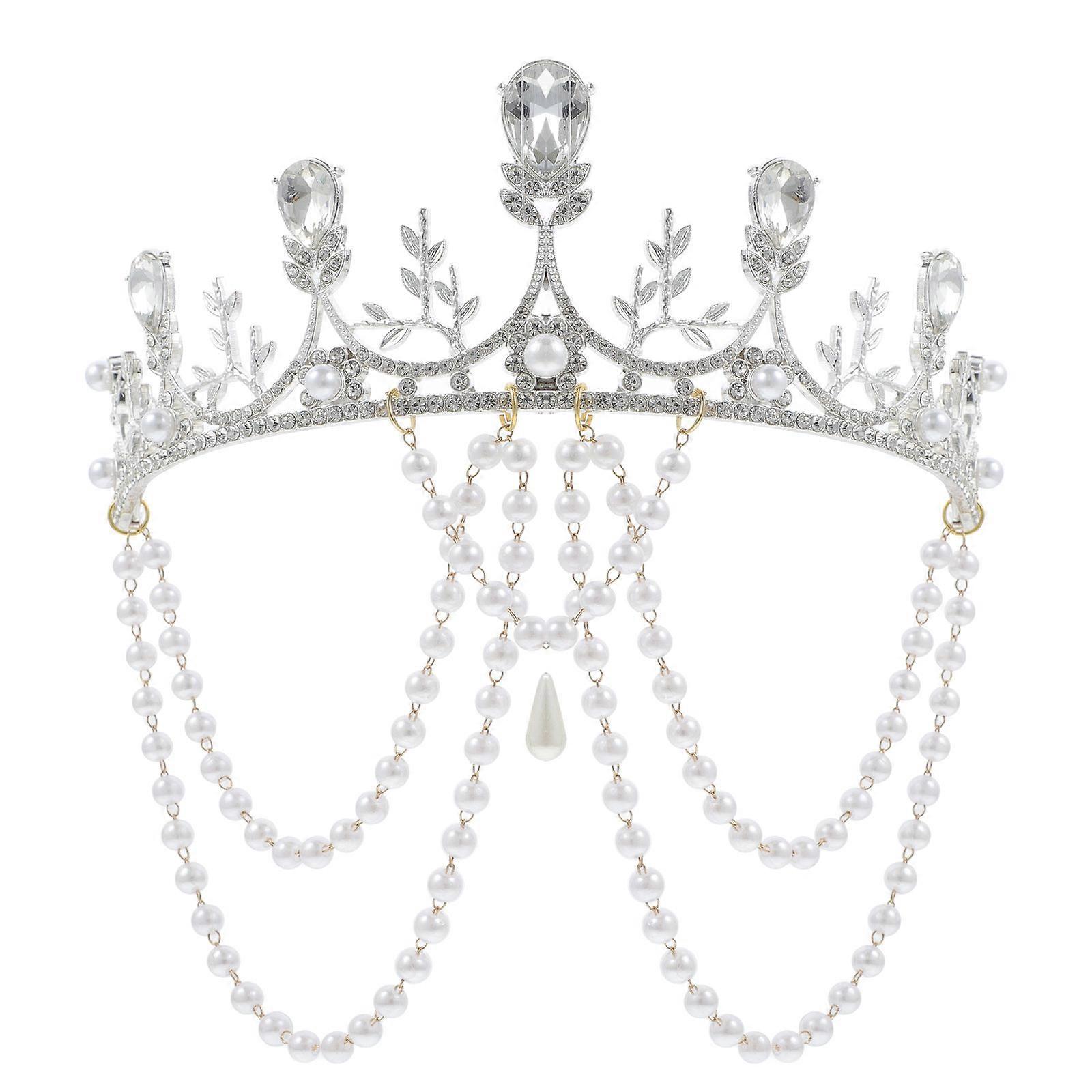 Lolita Crown Glittering Rhinestones Wedding Headband 1Pcs White Metal for Decor