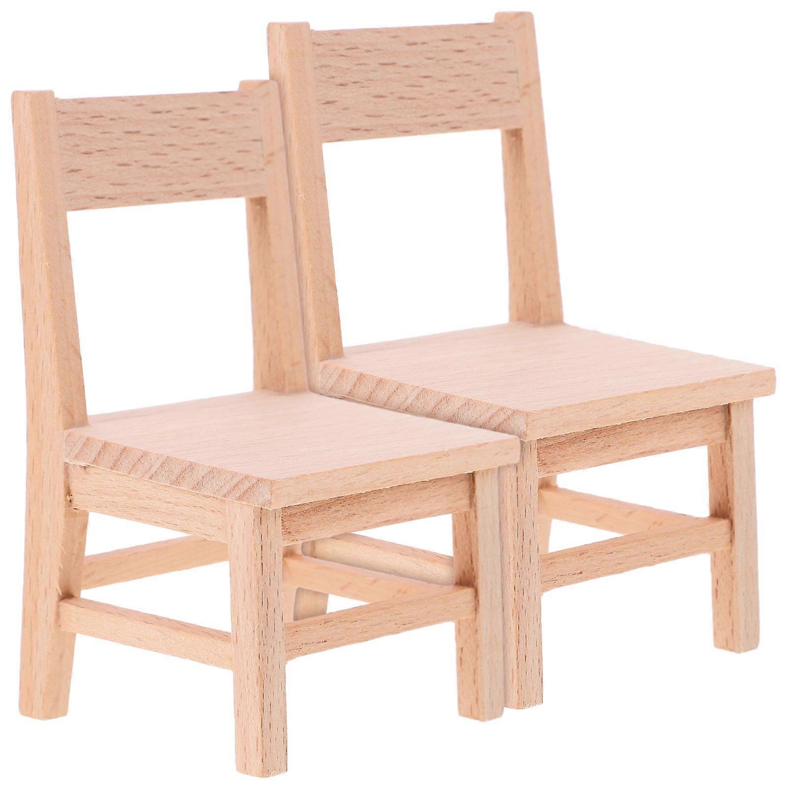 Doll House Miniature Chair Model for Decorative Use 2Pcs Wooden Furniture
