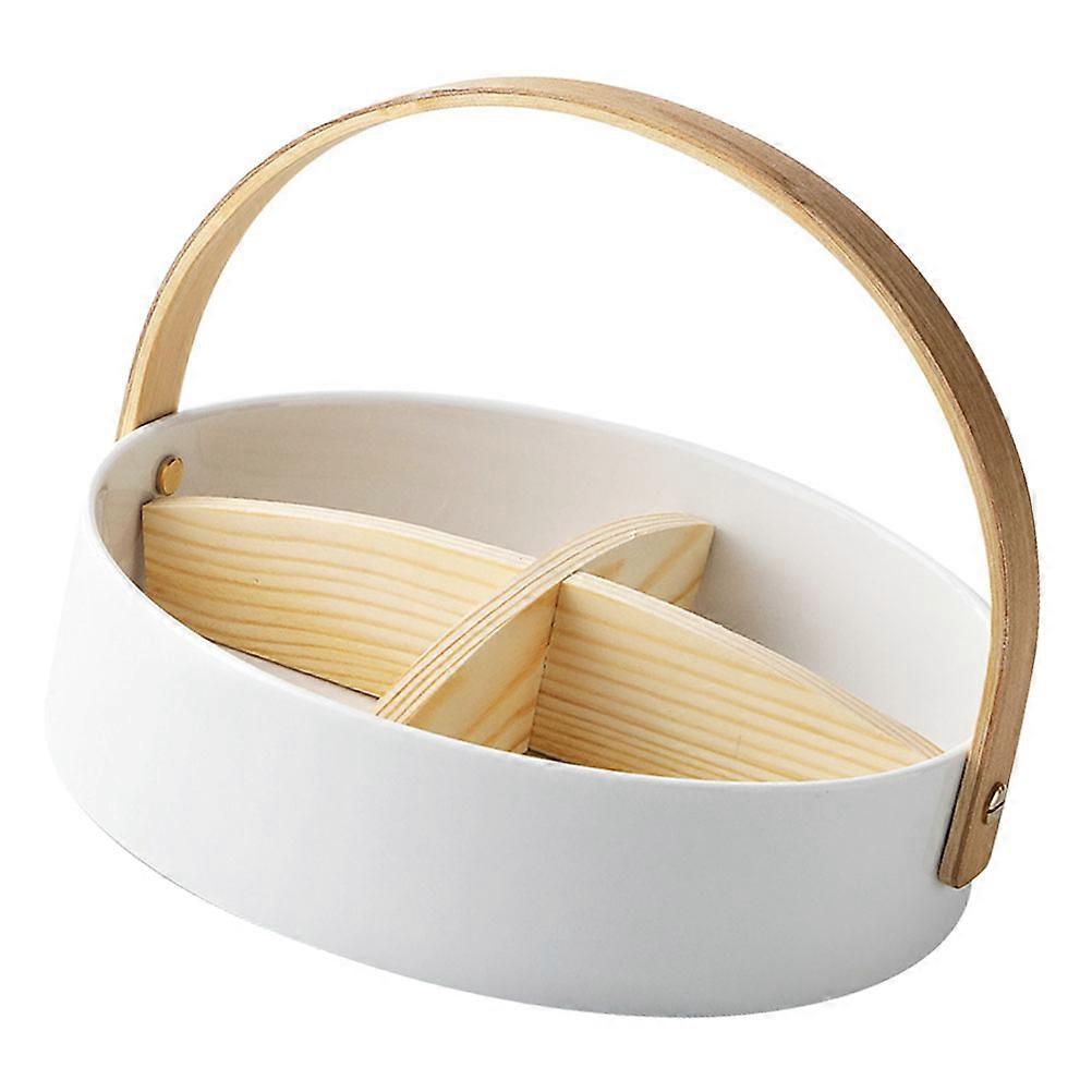 1Pack Compartment Dish For Serving Snacks Fruits And Nuts At Home In White Color Made Of Wood And Stylish Organization