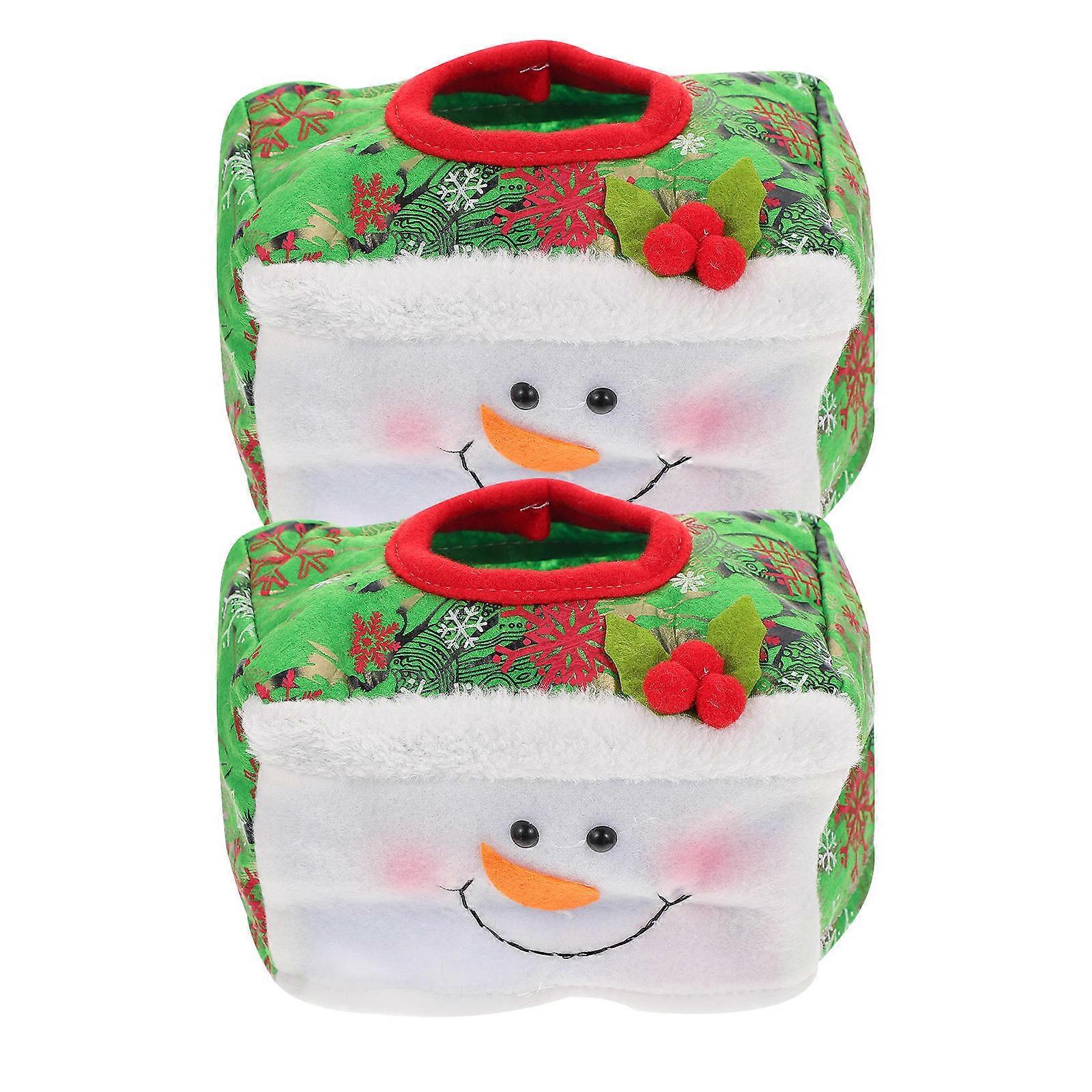 Christmas Tissue Box 2Pcs Green Non-Woven Fabric Tissue Holder with Festive Tidiness for Home Use
